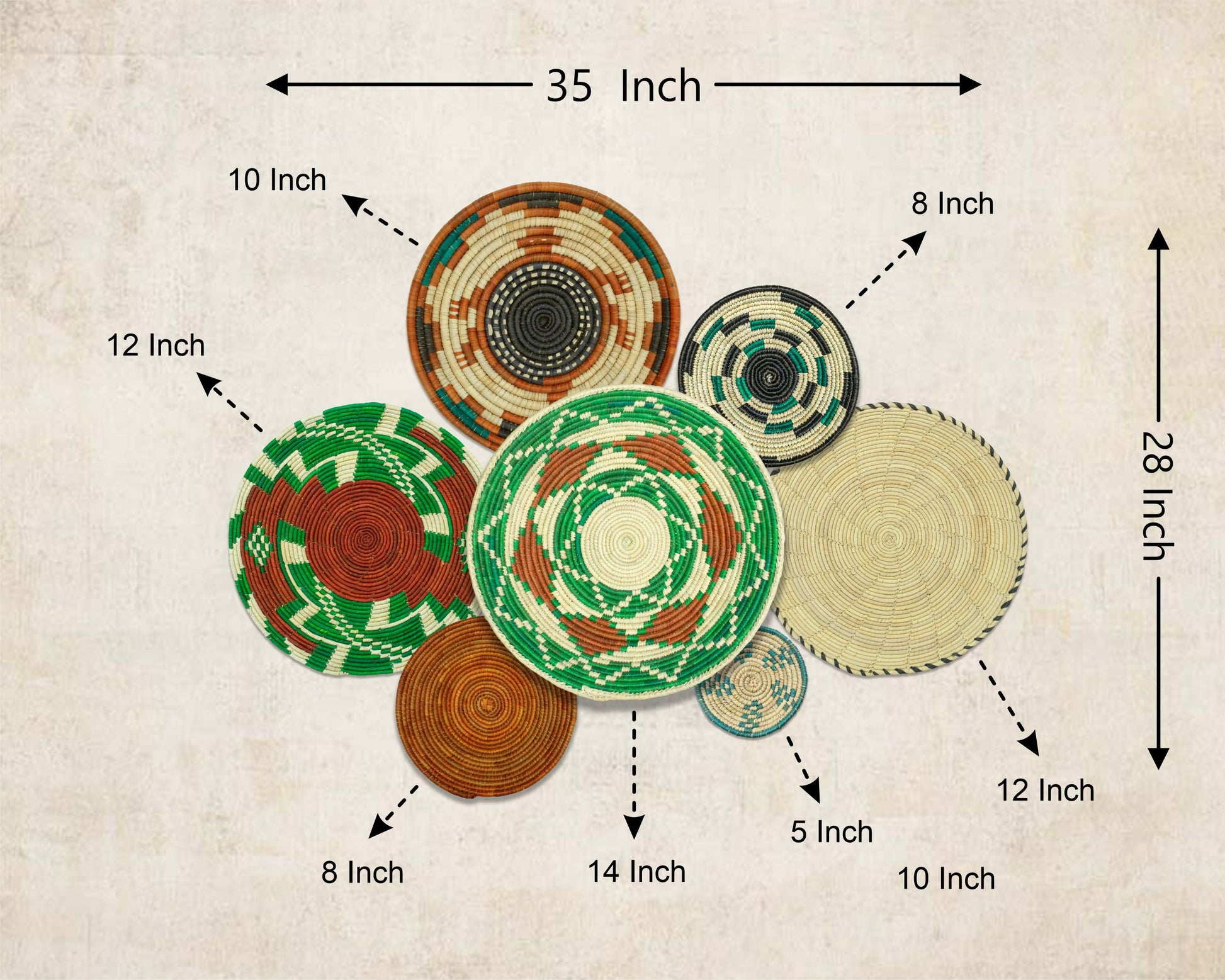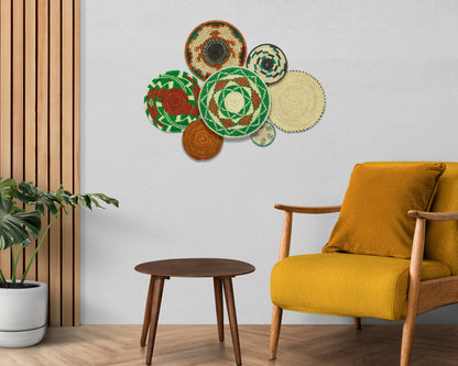 Set of 7 Handwoven wall baskets Set 318-7-N