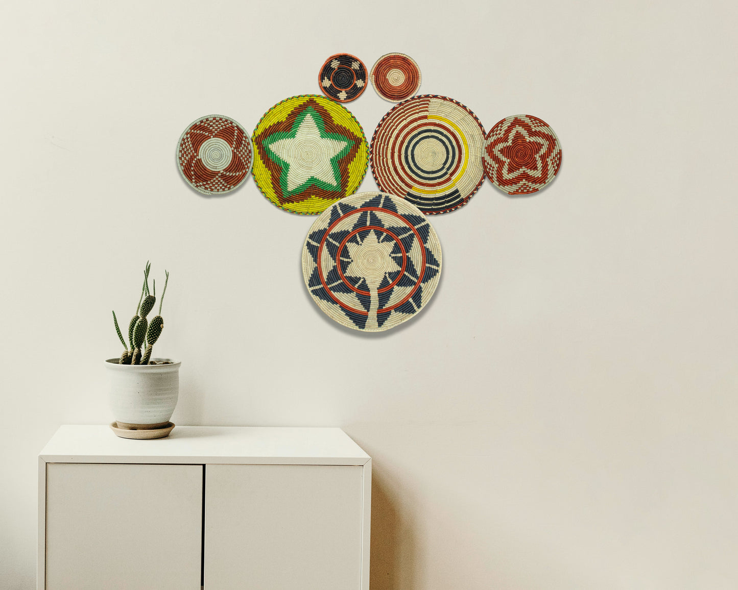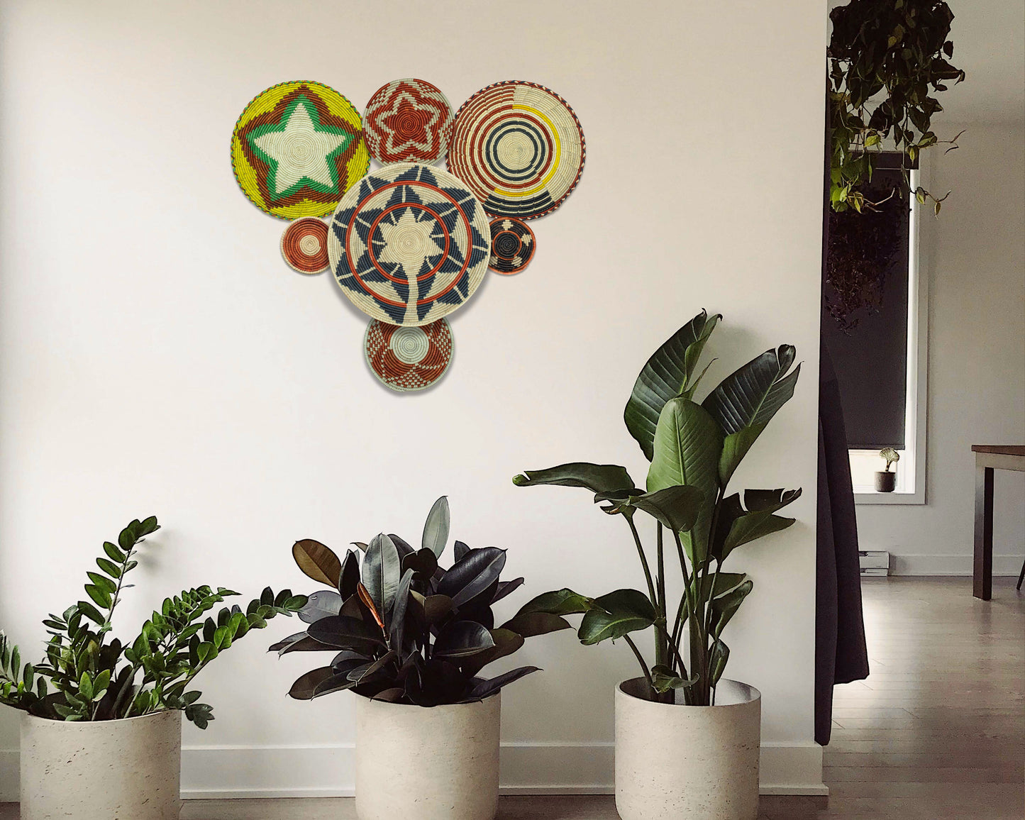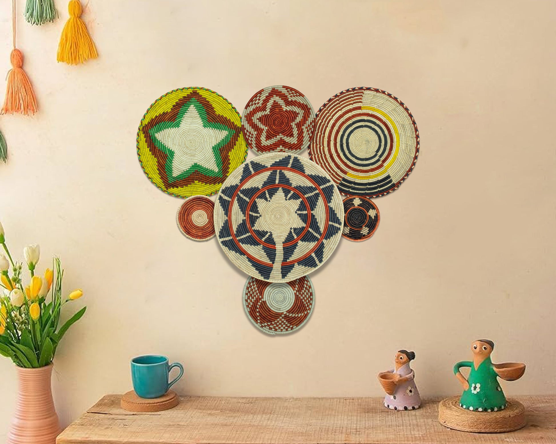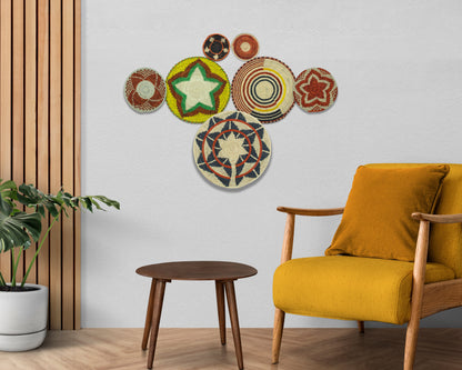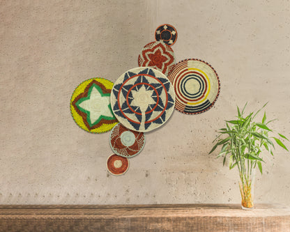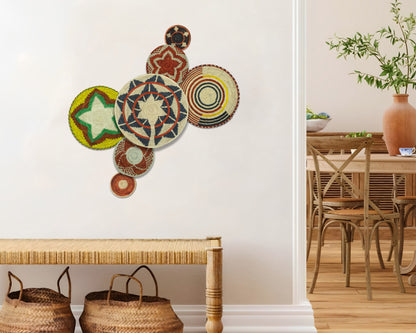Each basket in this set is uniquely woven by skilled artisans, ensuring one-of-a-kind patterns and intricate details that add depth and character to any space. Whether you arrange them as a statement wall display, use them as tabletop decor, or incorporate them into a gallery wall, these baskets effortlessly enhance Boho, farmhouse, rustic, and modern interiors.