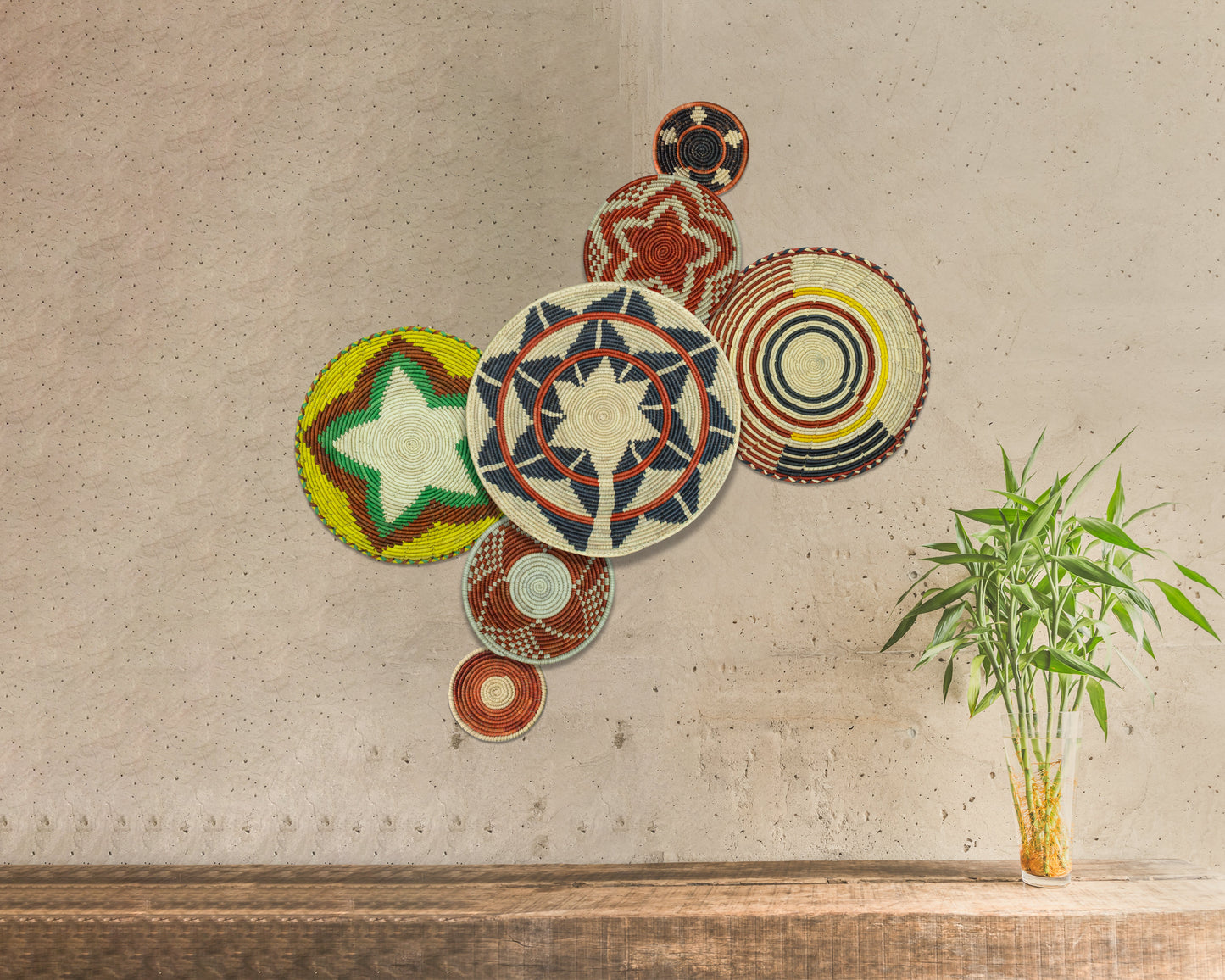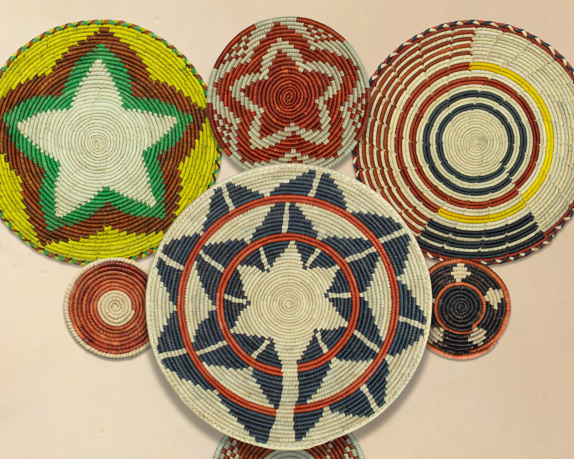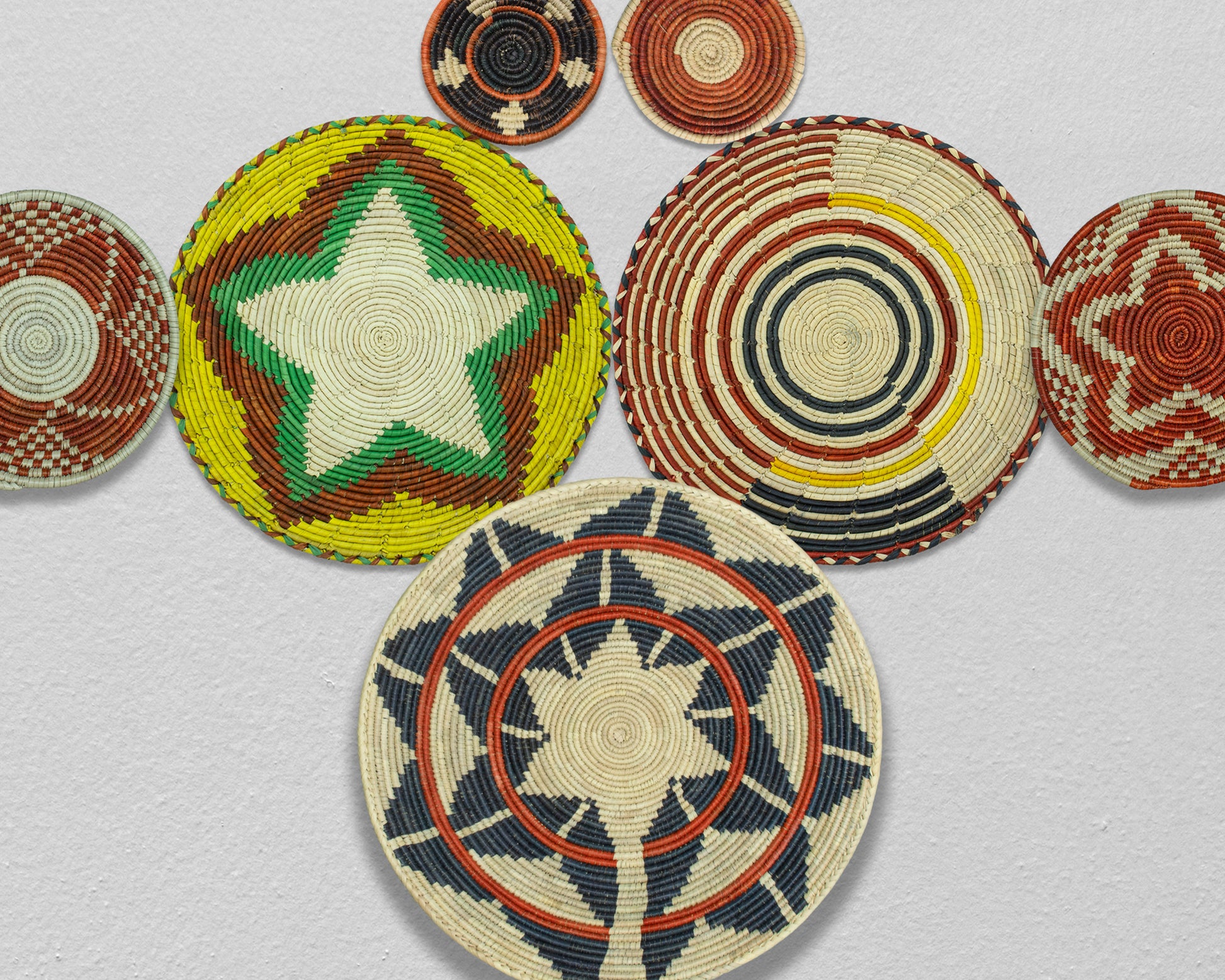 Set of 7 Handwoven wall baskets Set 321-7-N