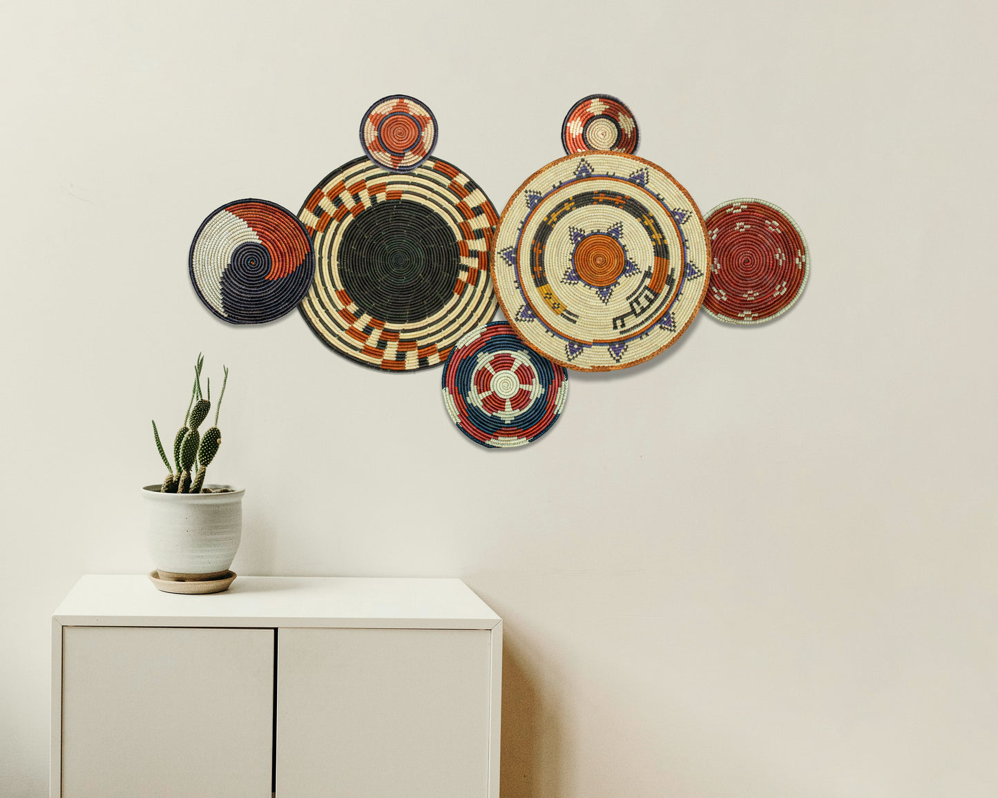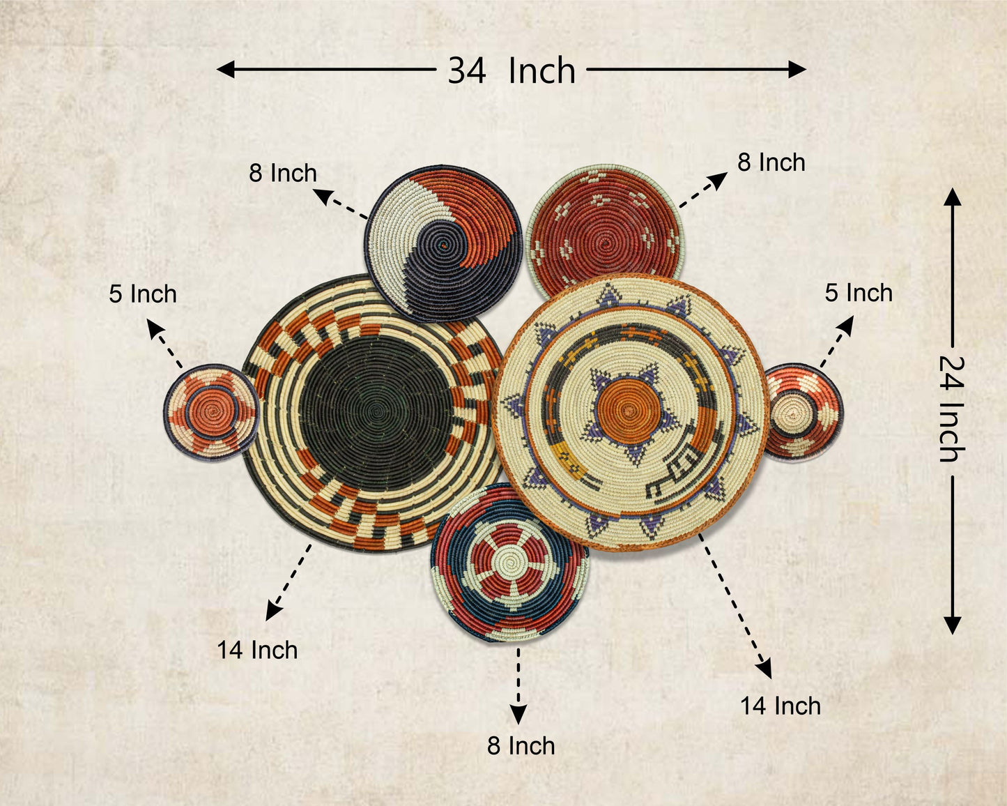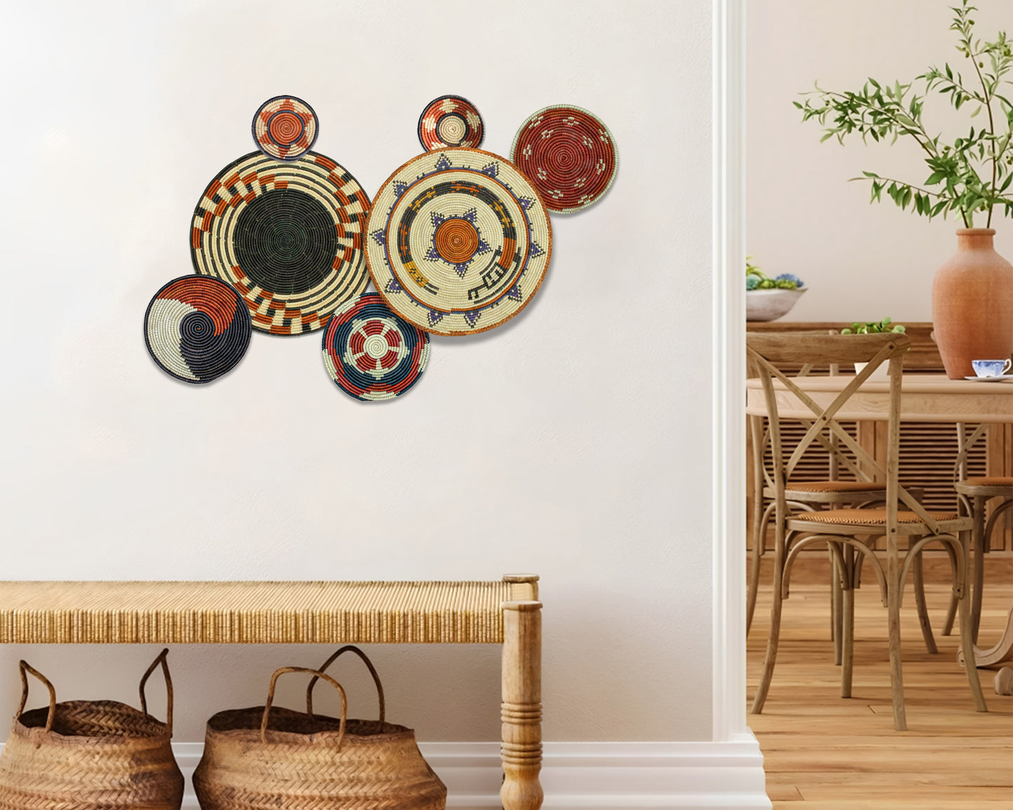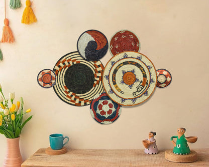 Set of 7 Handwoven wall baskets Set 323-7-N