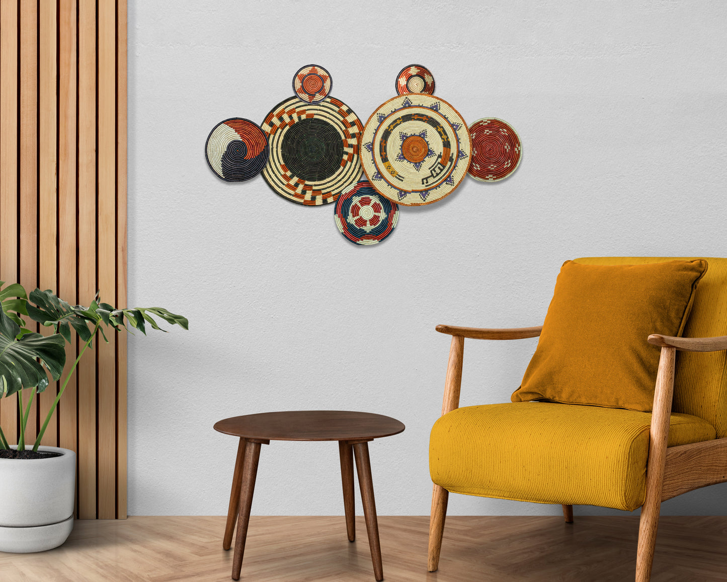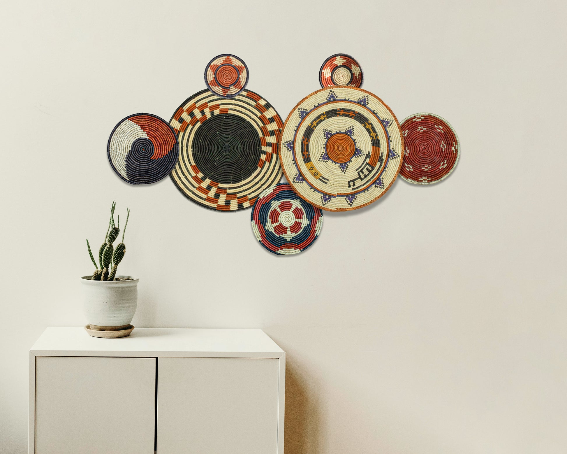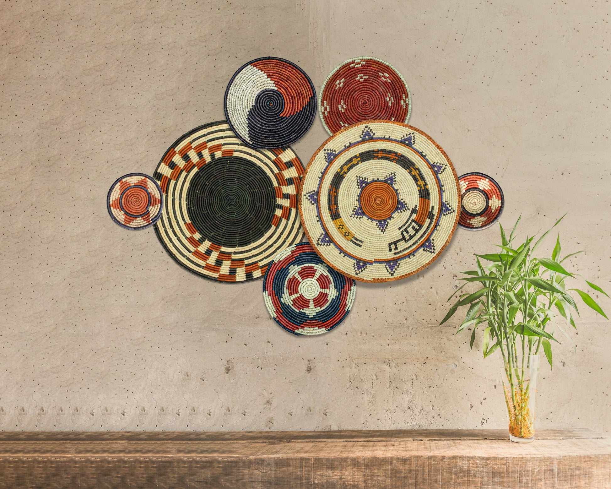 Set of 7 Handwoven wall baskets Set 323-7-N