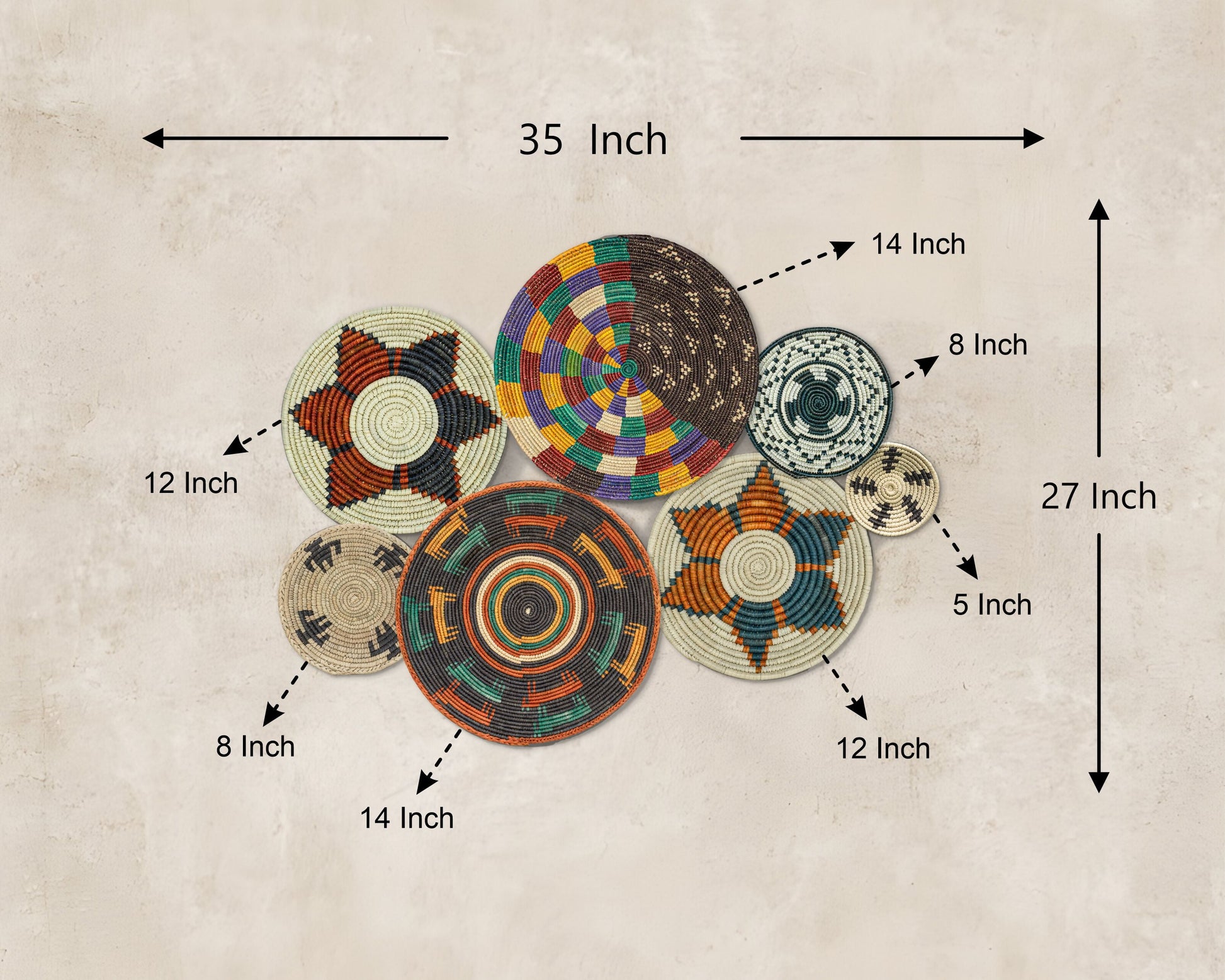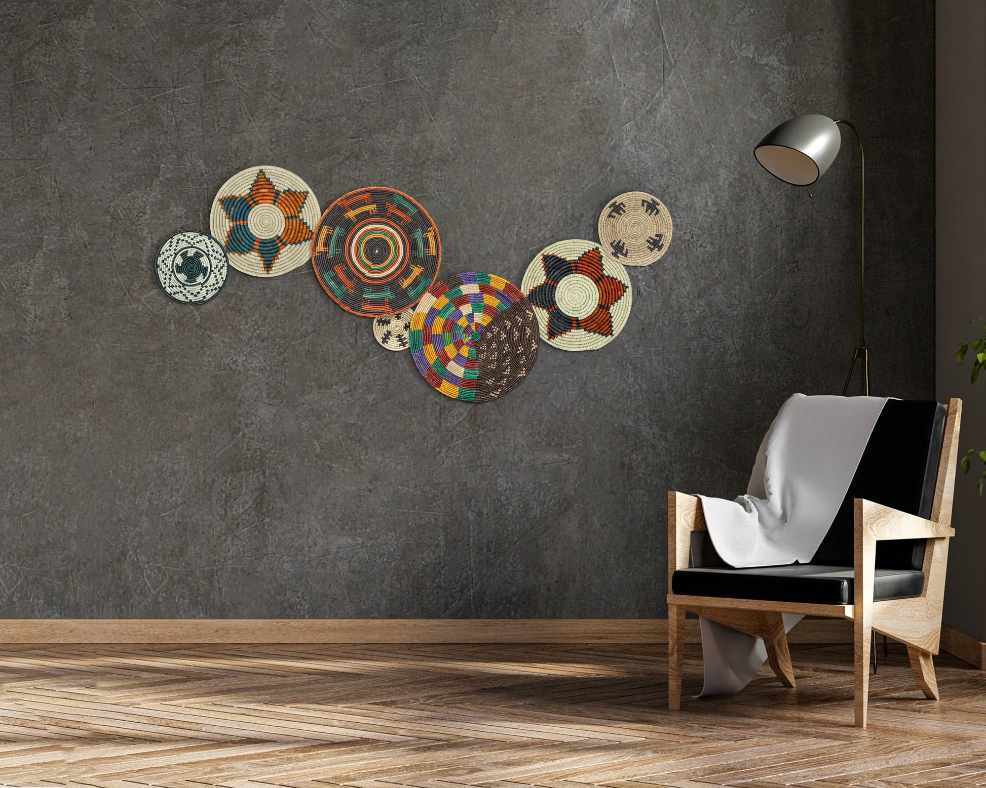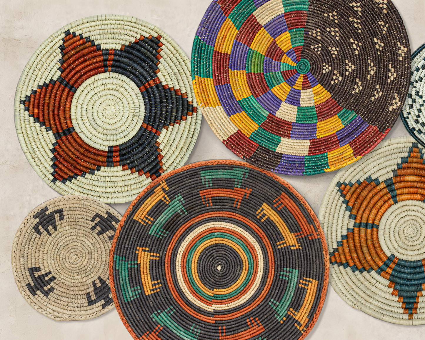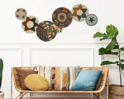 Set of 7 Handwoven wall baskets Set 42-7-N