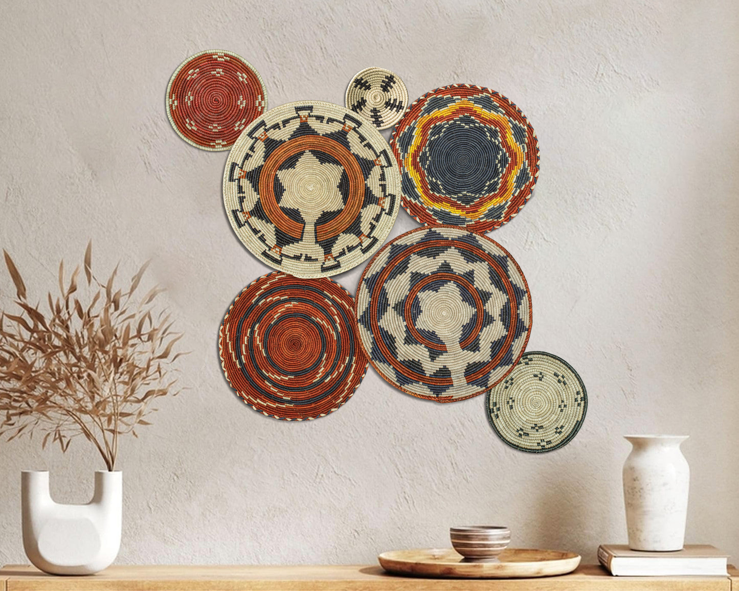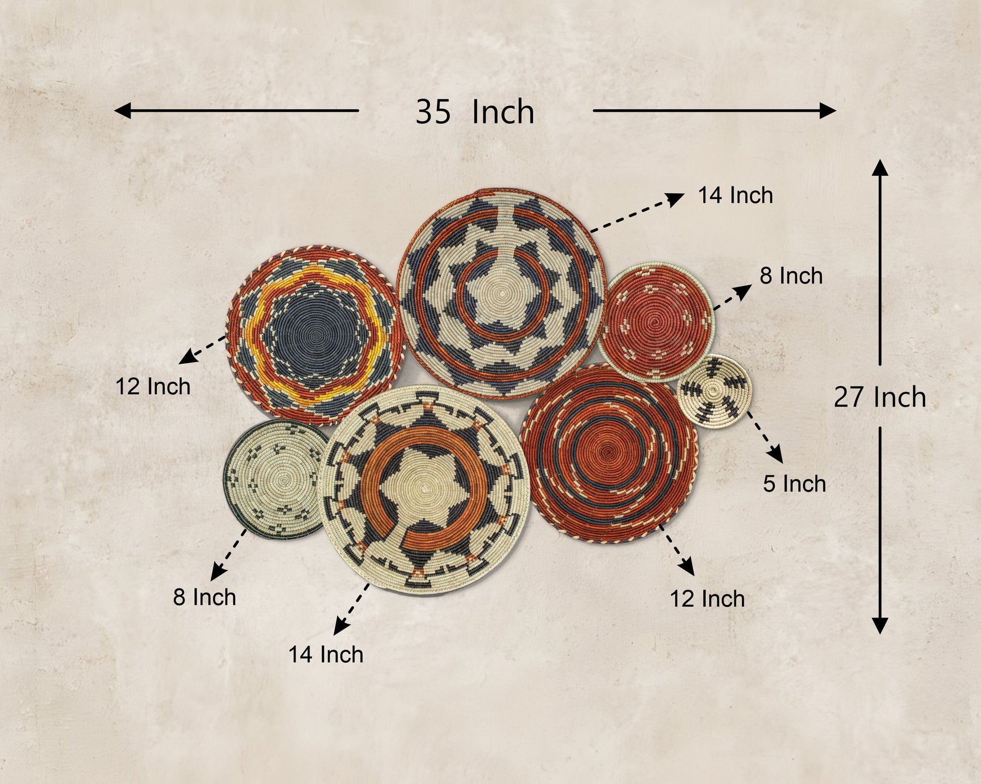 Set of 7 Handwoven wall baskets Set 44-7-N