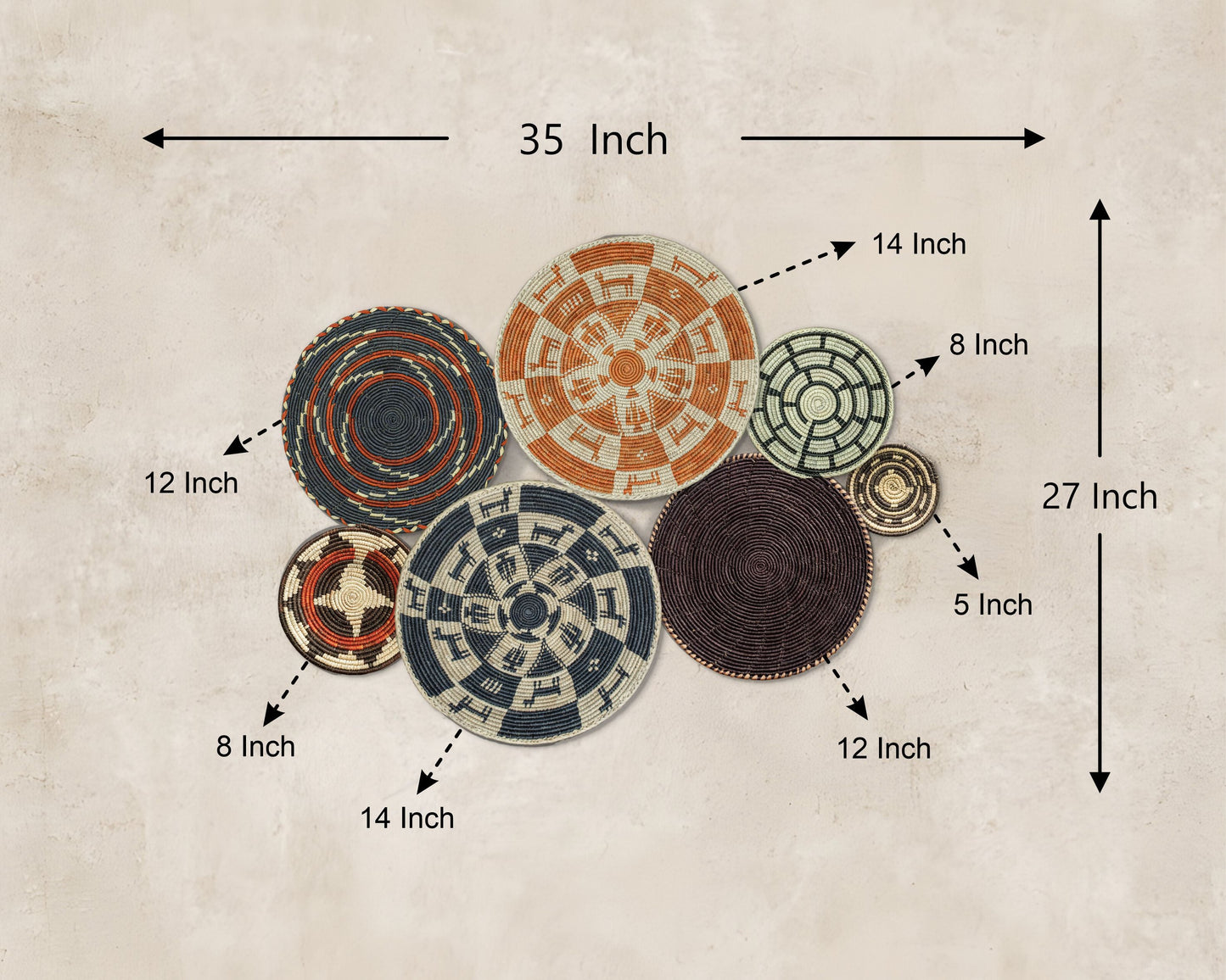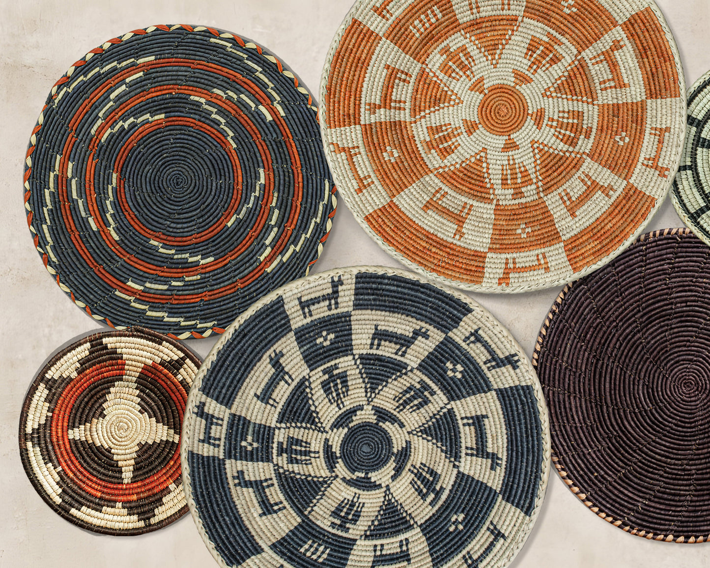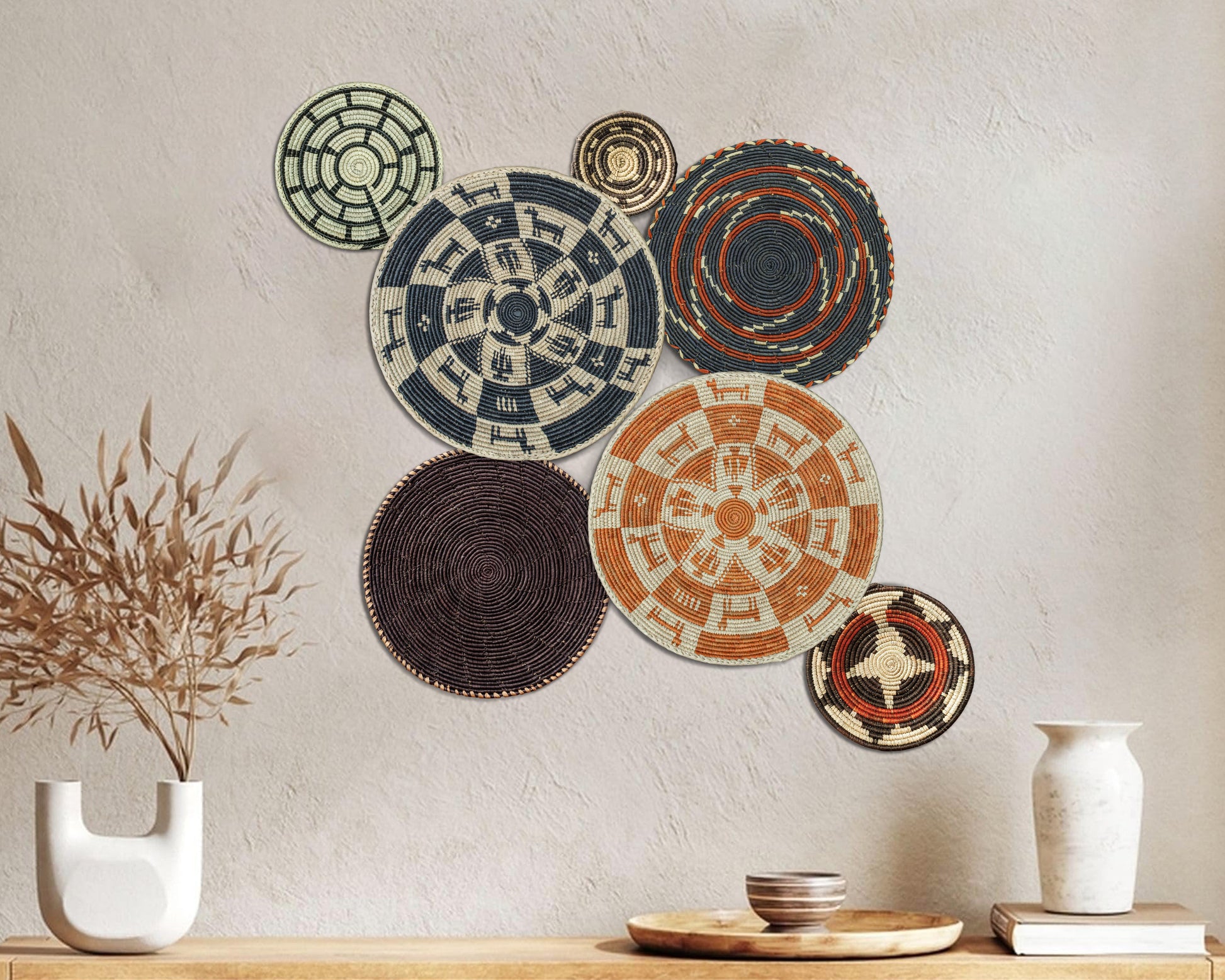 Set of 7 Handwoven wall baskets Set 45-7-N