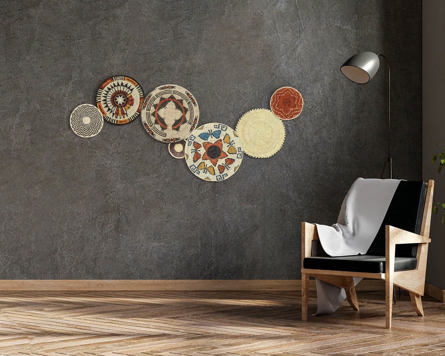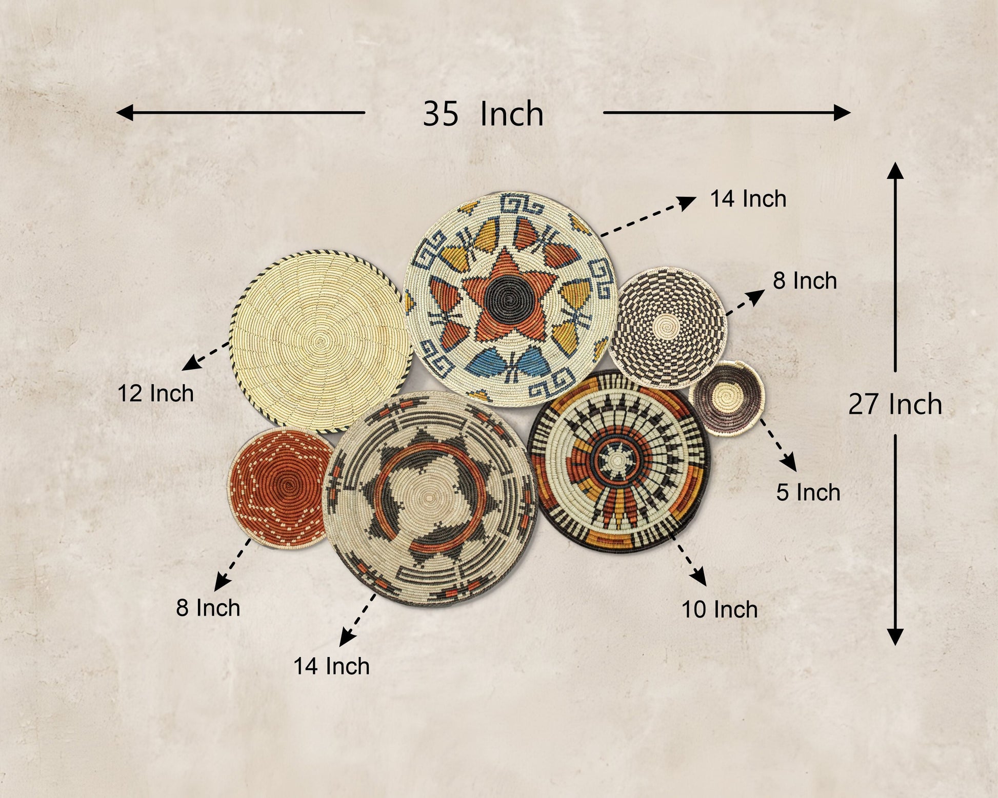 Set of 7 Handwoven wall baskets Set 46-7-N
