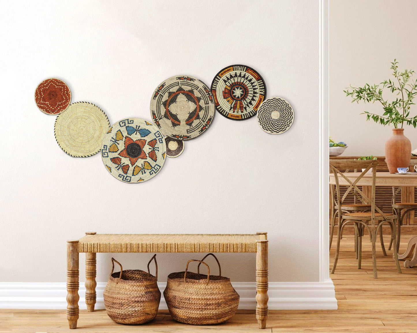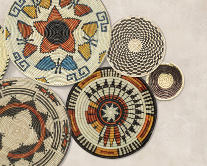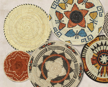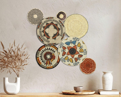 Each basket in this set is uniquely woven by skilled artisans, ensuring one-of-a-kind patterns and intricate details that add depth and character to any space. Whether you arrange them as a statement wall display, use them as tabletop decor, or incorporate them into a gallery wall, these baskets effortlessly enhance Boho, farmhouse, rustic, and modern interiors.
