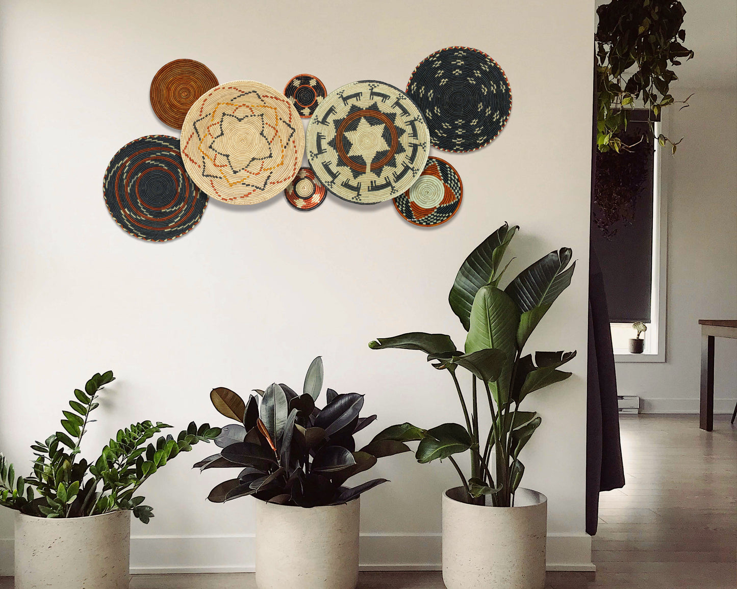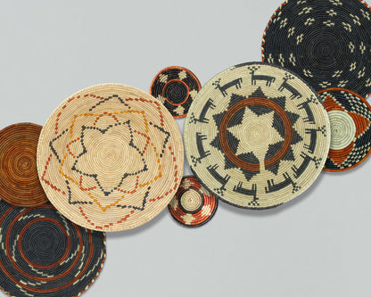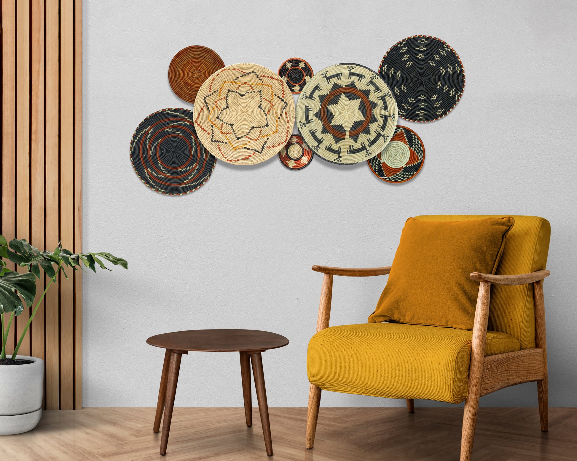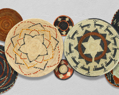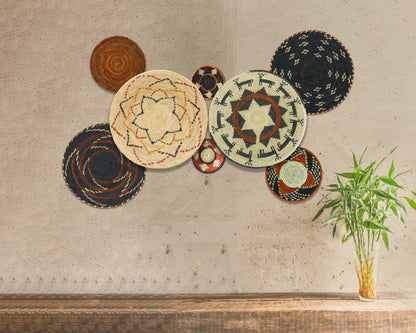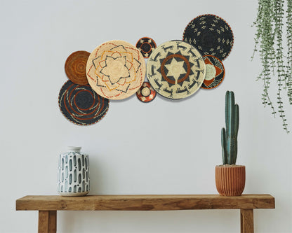 Each basket in this set is uniquely woven by skilled artisans, ensuring one-of-a-kind patterns and intricate details that add depth and character to any space. Whether you arrange them as a statement wall display, use them as tabletop decor, or incorporate them into a gallery wall, these baskets effortlessly enhance Boho, farmhouse, rustic, and modern interiors.