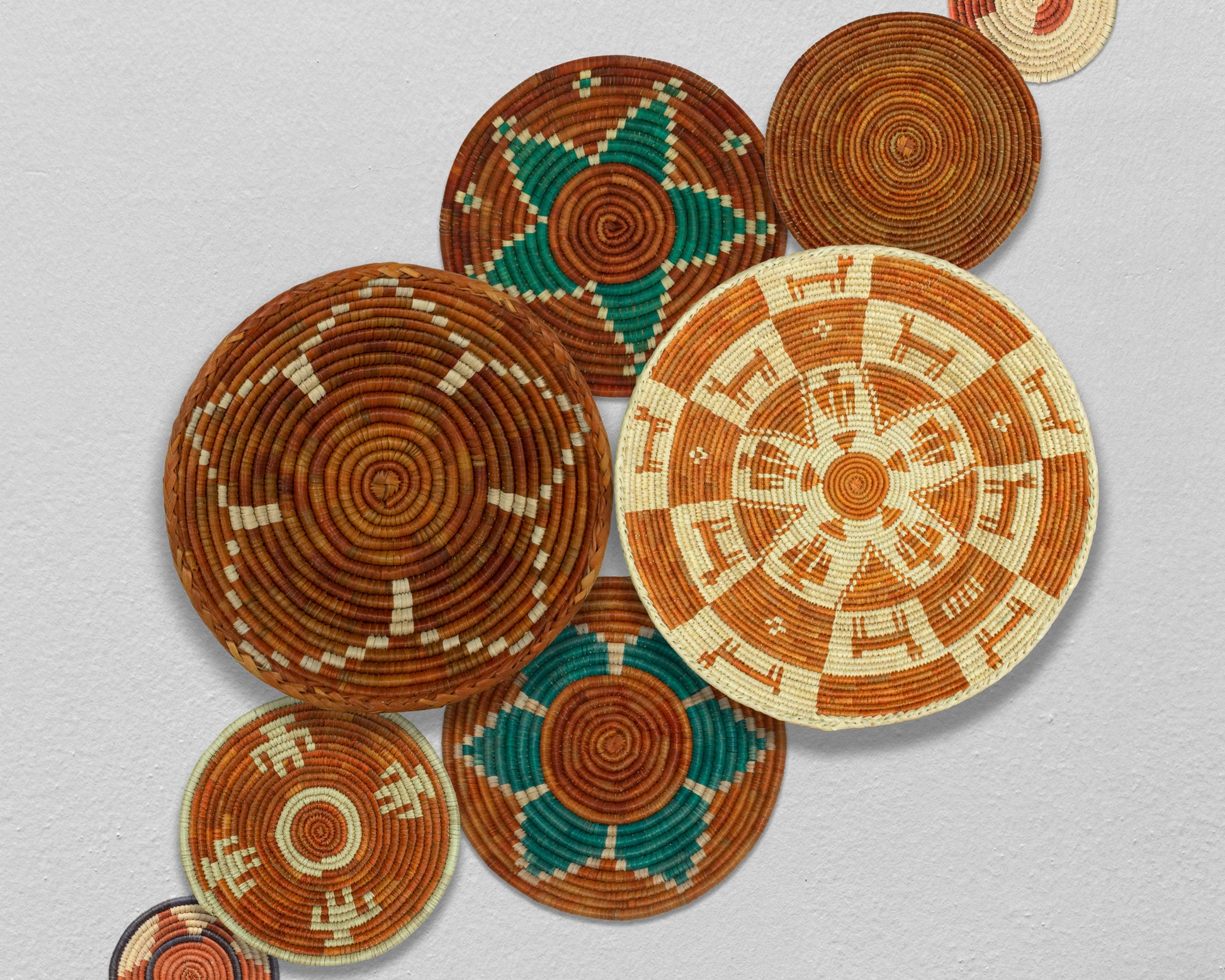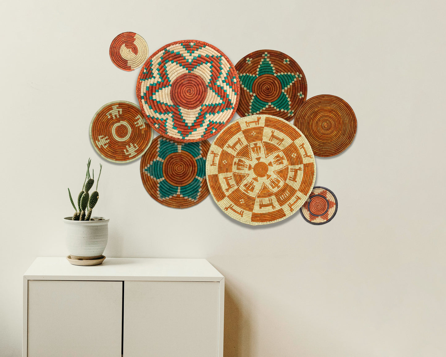 Each basket in this set is uniquely woven by skilled artisans, ensuring one-of-a-kind patterns and intricate details that add depth and character to any space. Whether you arrange them as a statement wall display, use them as tabletop decor, or incorporate them into a gallery wall, these baskets effortlessly enhance Boho, farmhouse, rustic, and modern interiors.
