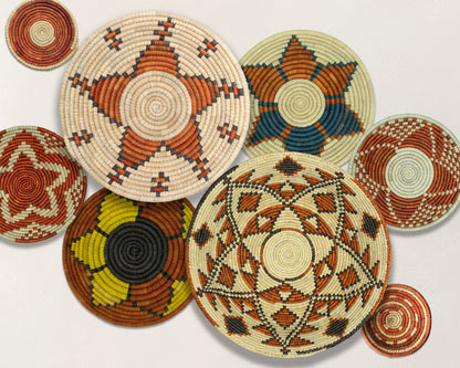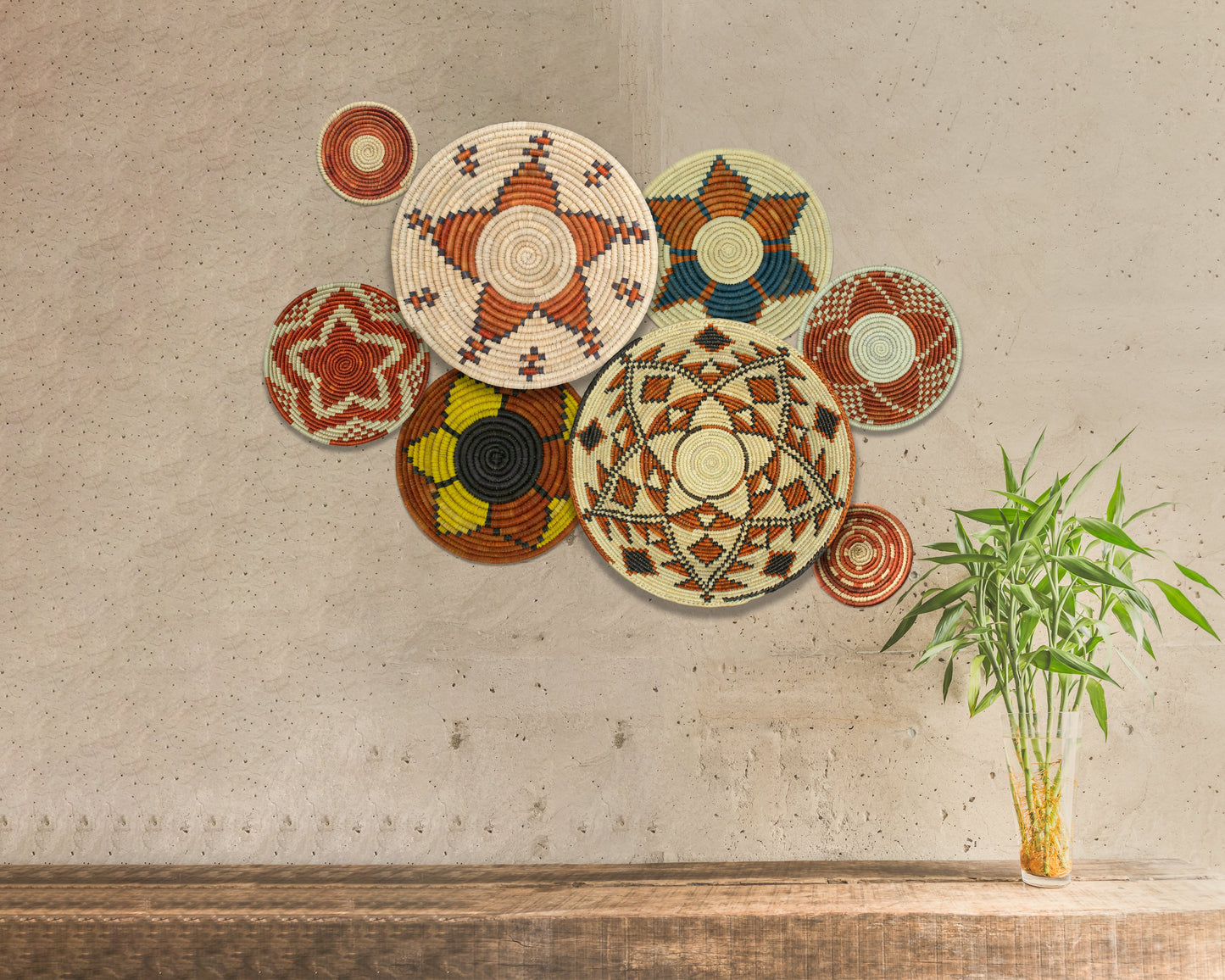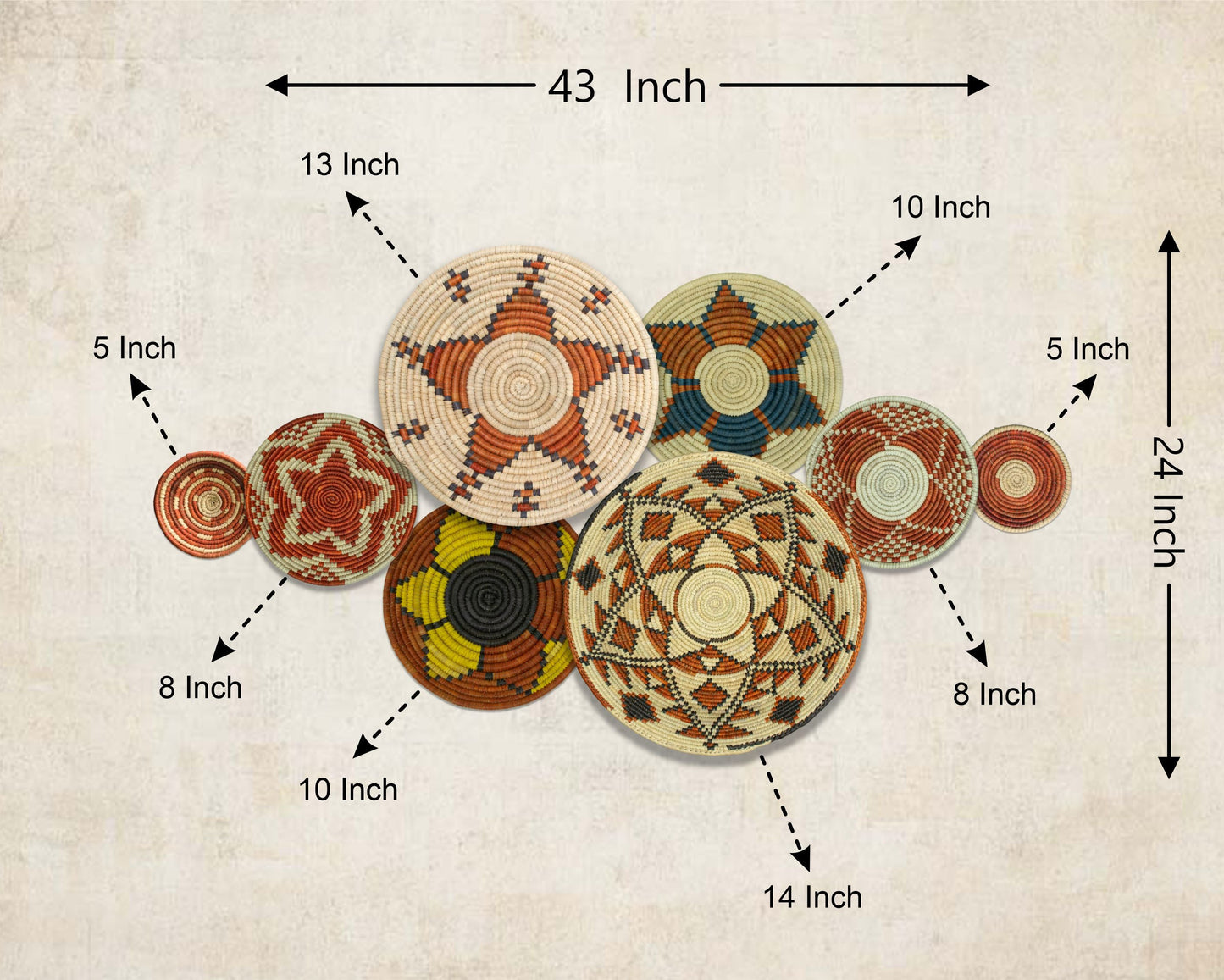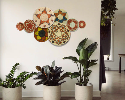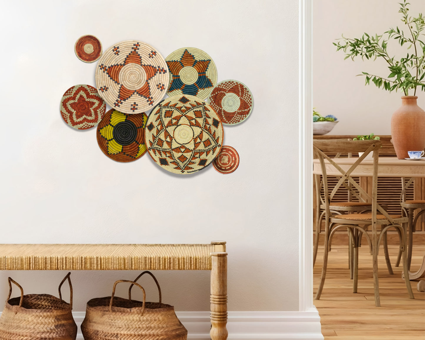 Each basket in this set is uniquely woven by skilled artisans, ensuring one-of-a-kind patterns and intricate details that add depth and character to any space. Whether you arrange them as a statement wall display, use them as tabletop decor, or incorporate them into a gallery wall, these baskets effortlessly enhance Boho, farmhouse, rustic, and modern interiors.