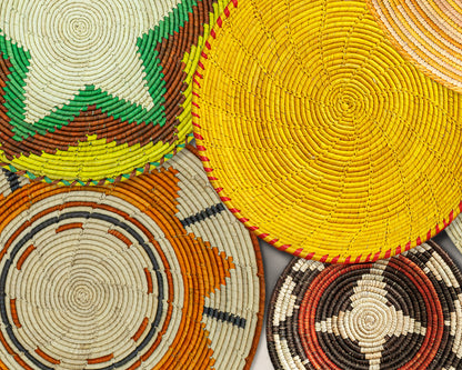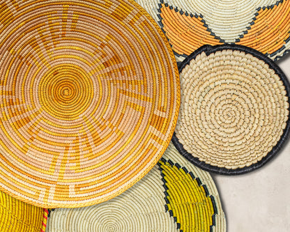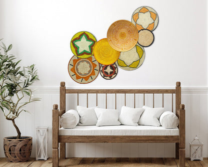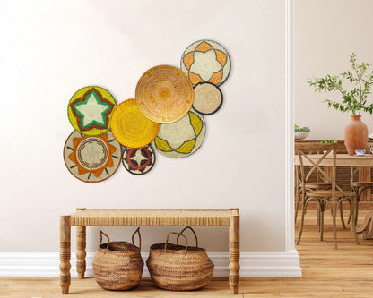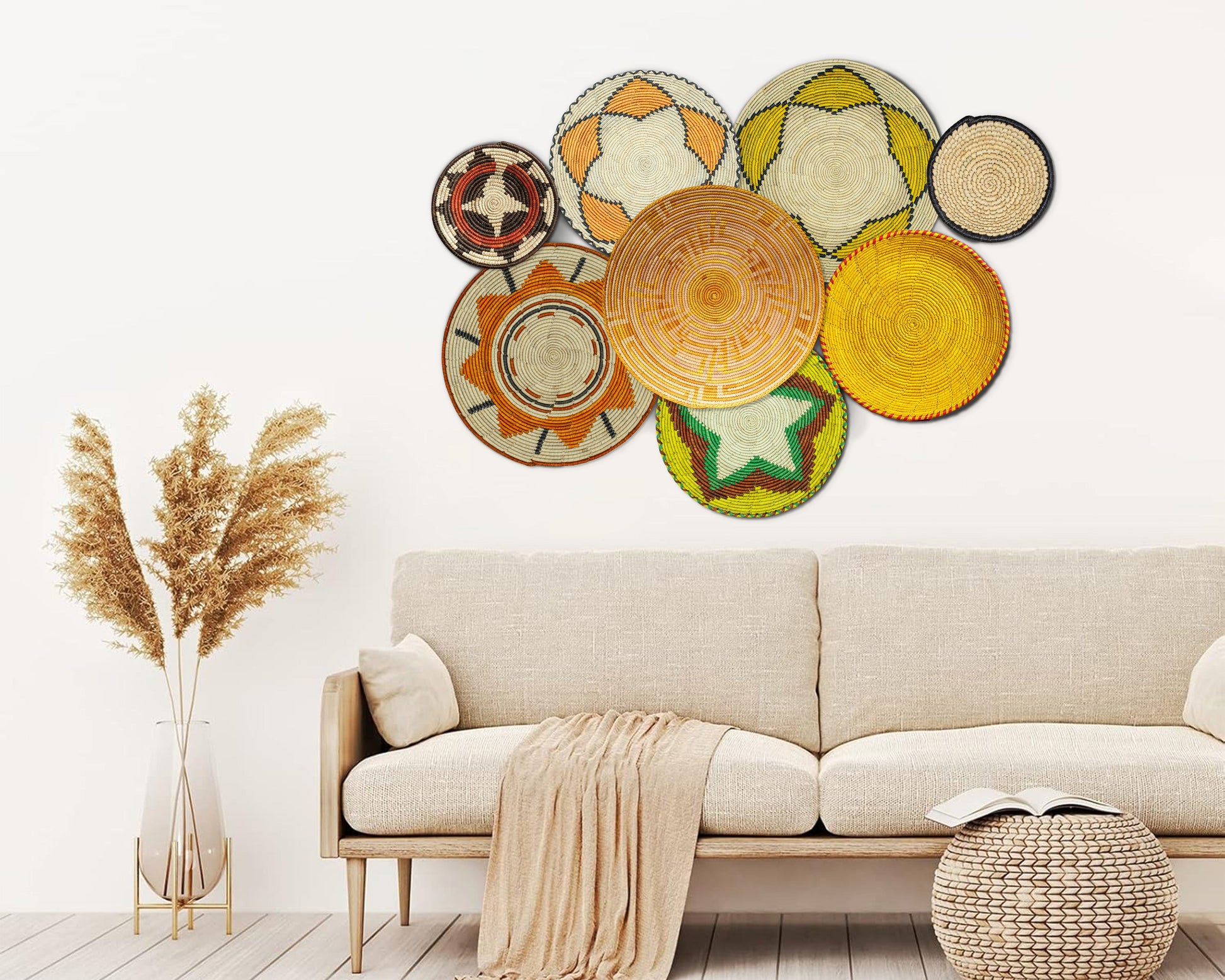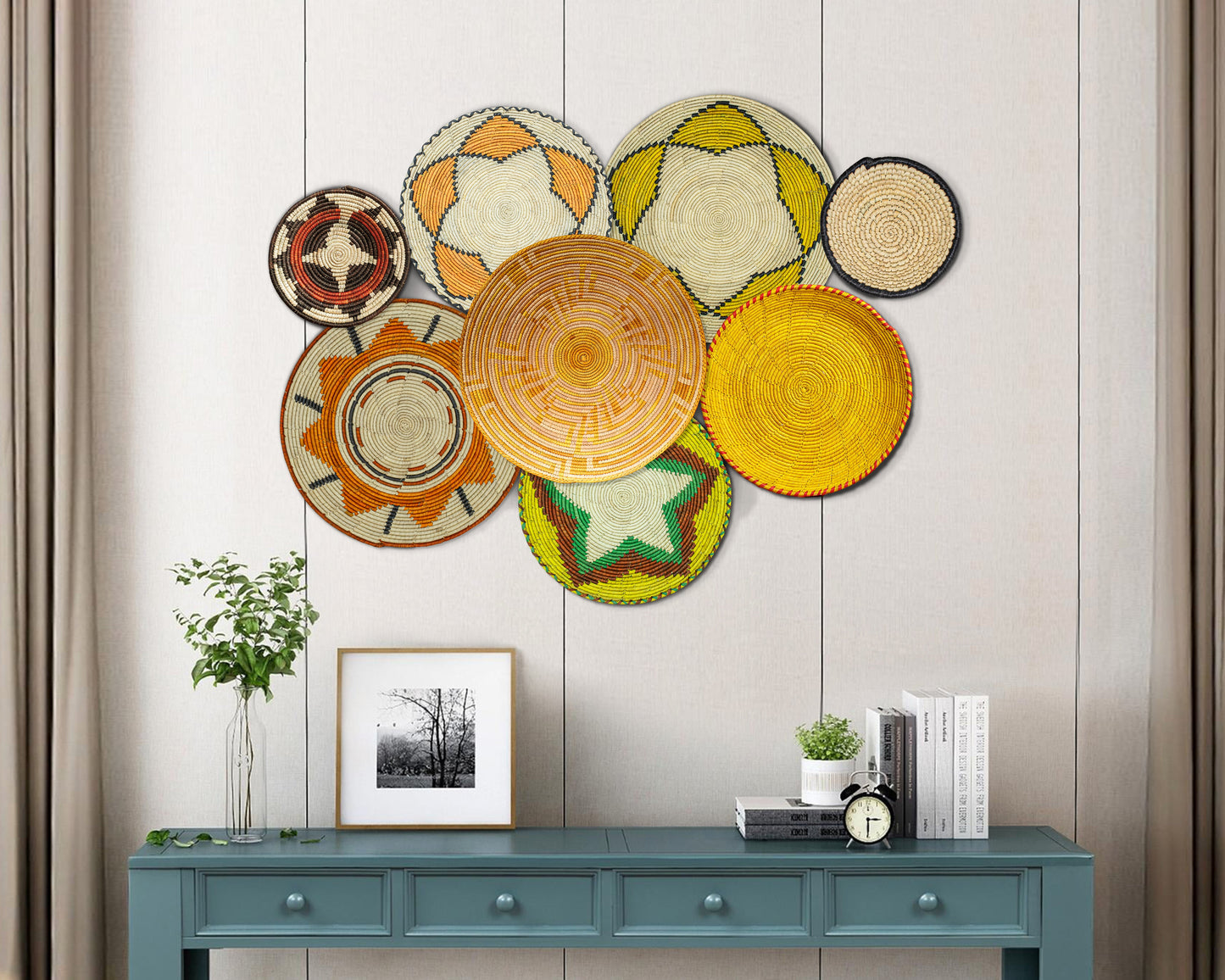 Each basket in this set is uniquely woven by skilled artisans, ensuring one-of-a-kind patterns and intricate details that add depth and character to any space. Whether you arrange them as a statement wall display, use them as tabletop decor, or incorporate them into a gallery wall, these baskets effortlessly enhance Boho, farmhouse, rustic, and modern interiors.