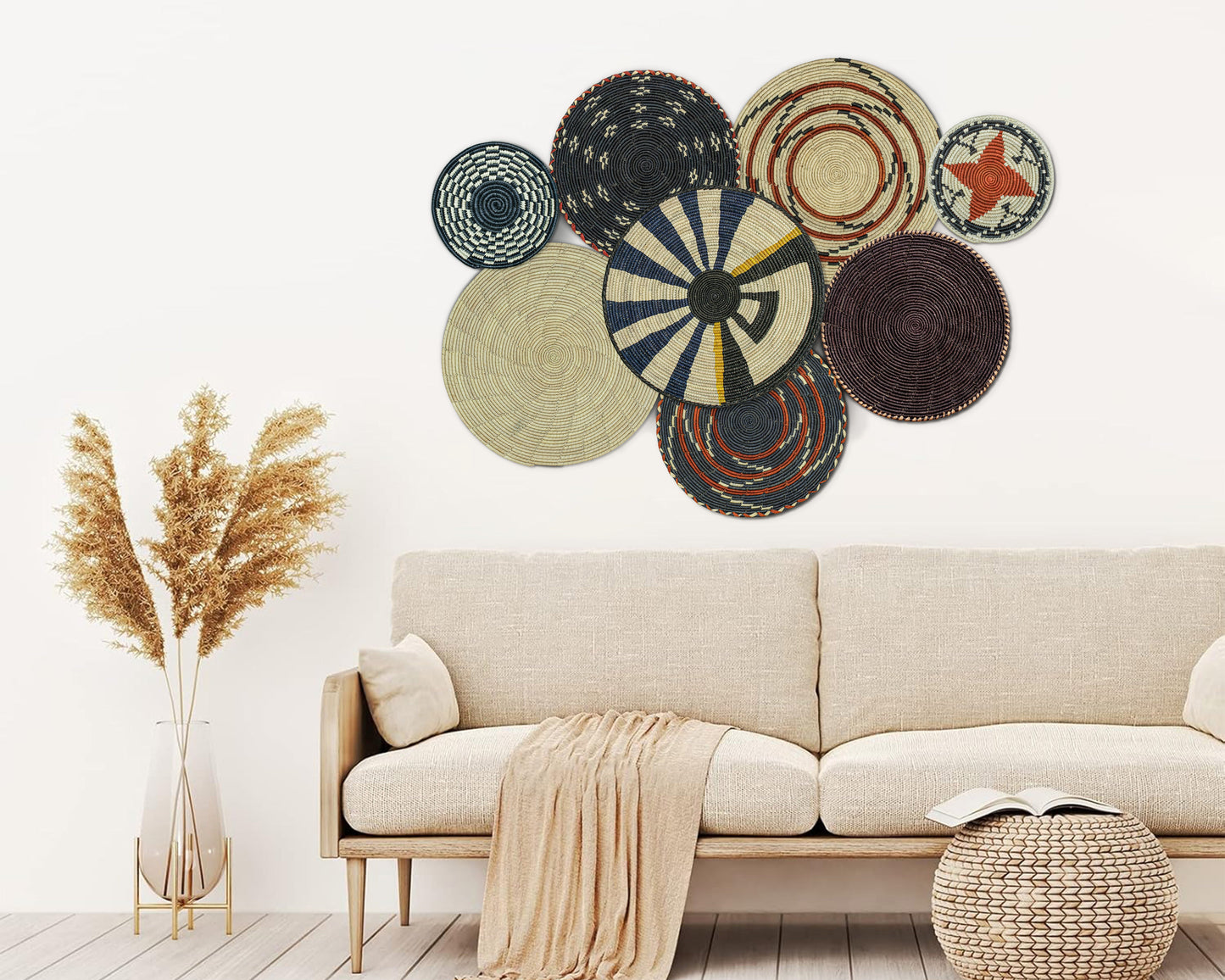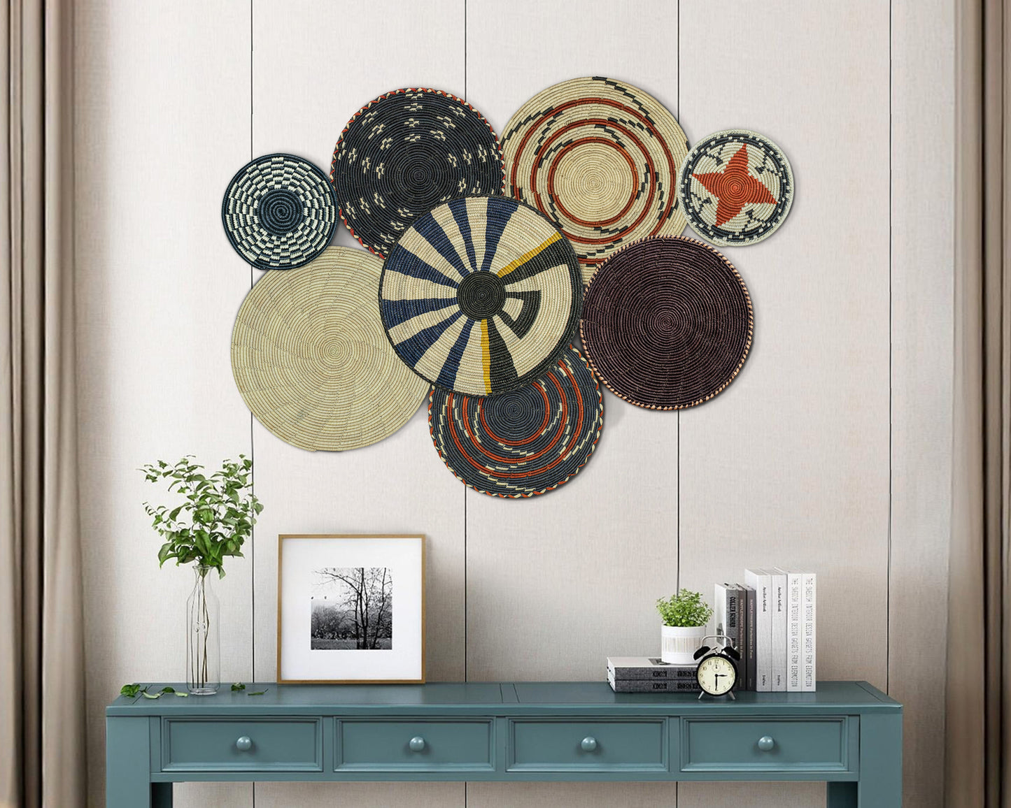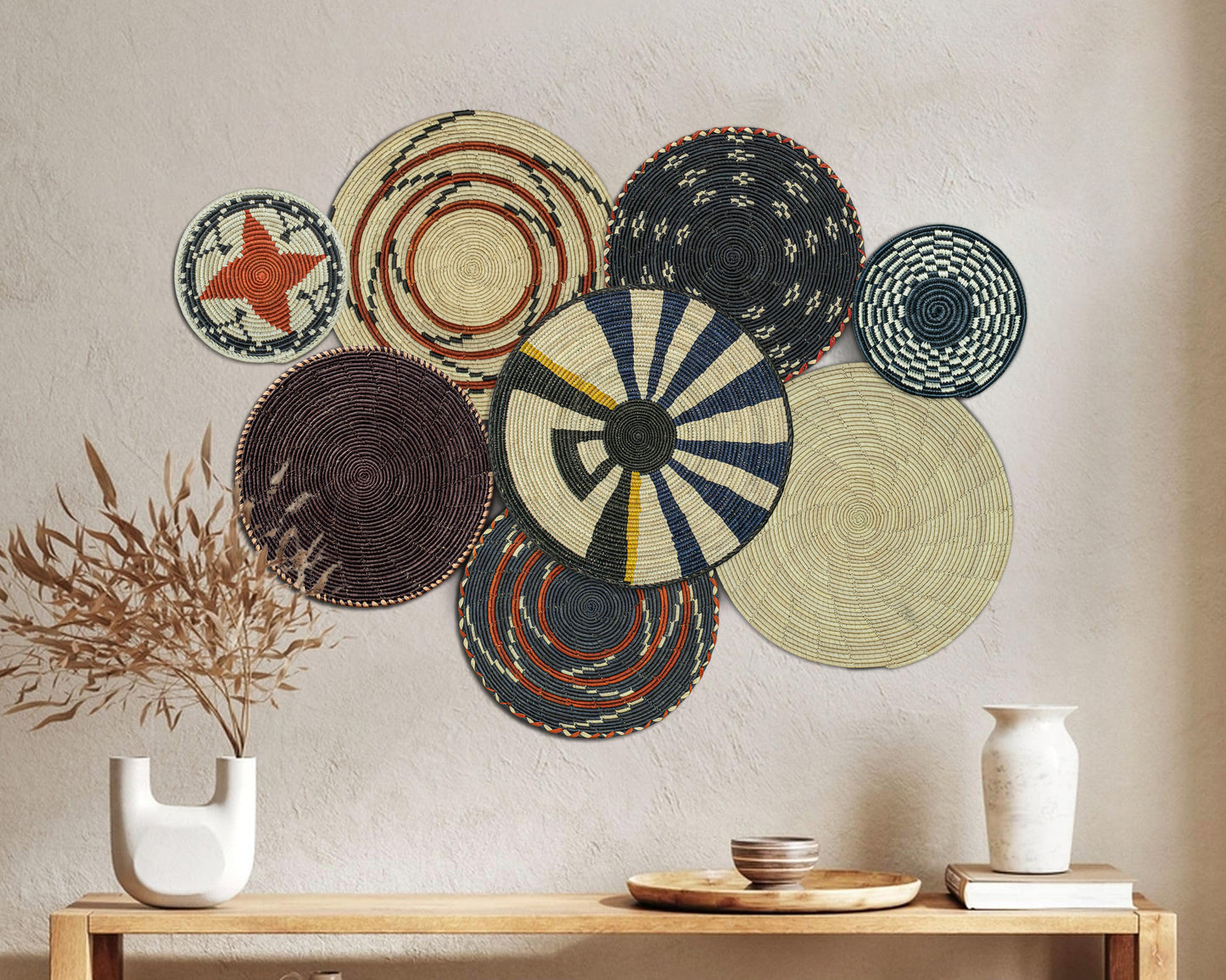 Each basket in this set is uniquely woven by skilled artisans, ensuring one-of-a-kind patterns and intricate details that add depth and character to any space. Whether you arrange them as a statement wall display, use them as tabletop decor, or incorporate them into a gallery wall, these baskets effortlessly enhance Boho, farmhouse, rustic, and modern interiors.