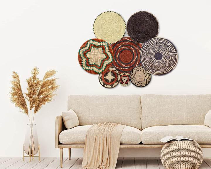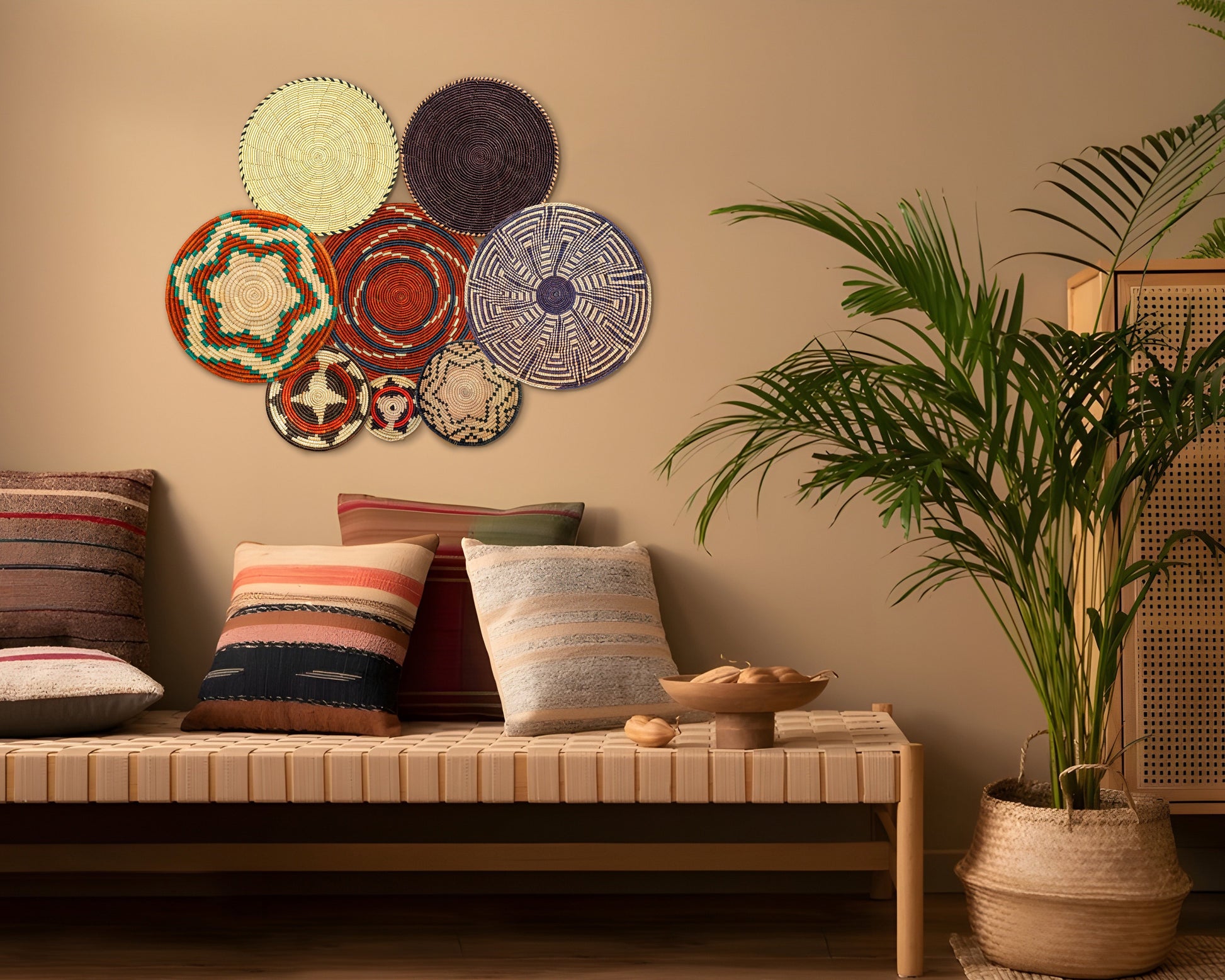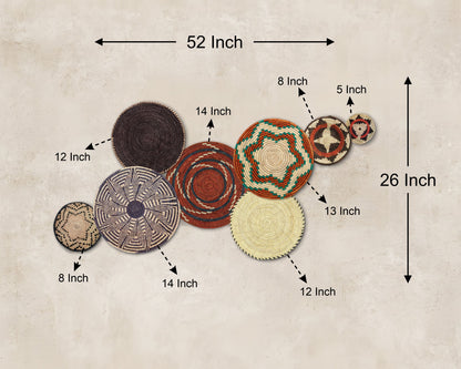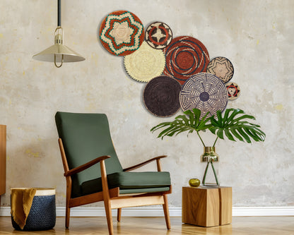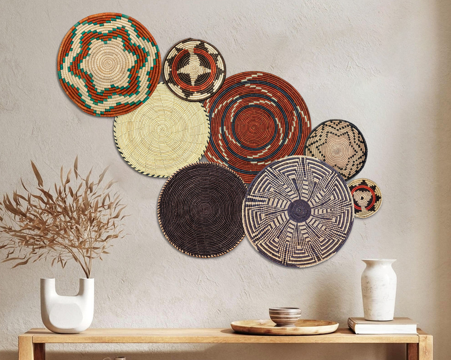 Each basket in this set is uniquely woven by skilled artisans, ensuring one-of-a-kind patterns and intricate details that add depth and character to any space. Whether you arrange them as a statement wall display, use them as tabletop decor, or incorporate them into a gallery wall, these baskets effortlessly enhance Boho, farmhouse, rustic, and modern interiors.