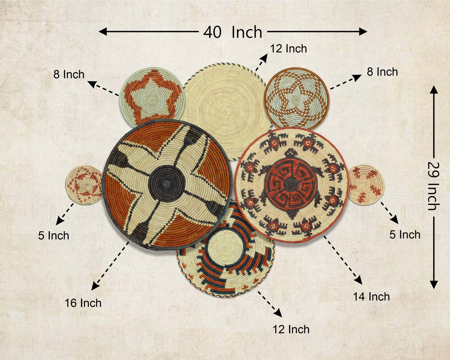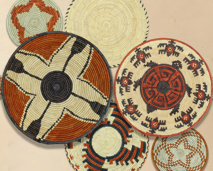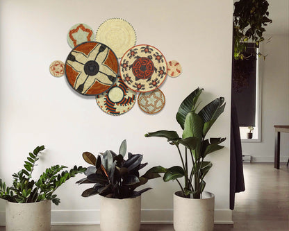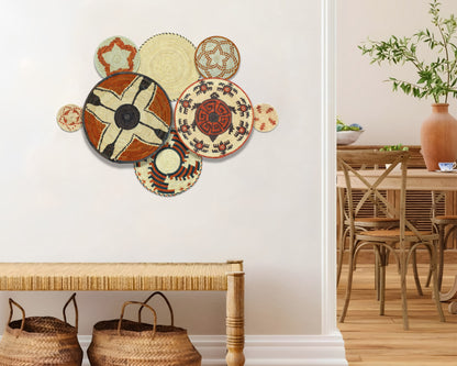 Each basket in this set is uniquely woven by skilled artisans, ensuring one-of-a-kind patterns and intricate details that add depth and character to any space. Whether you arrange them as a statement wall display, use them as tabletop decor, or incorporate them into a gallery wall, these baskets effortlessly enhance Boho, farmhouse, rustic, and modern interiors.