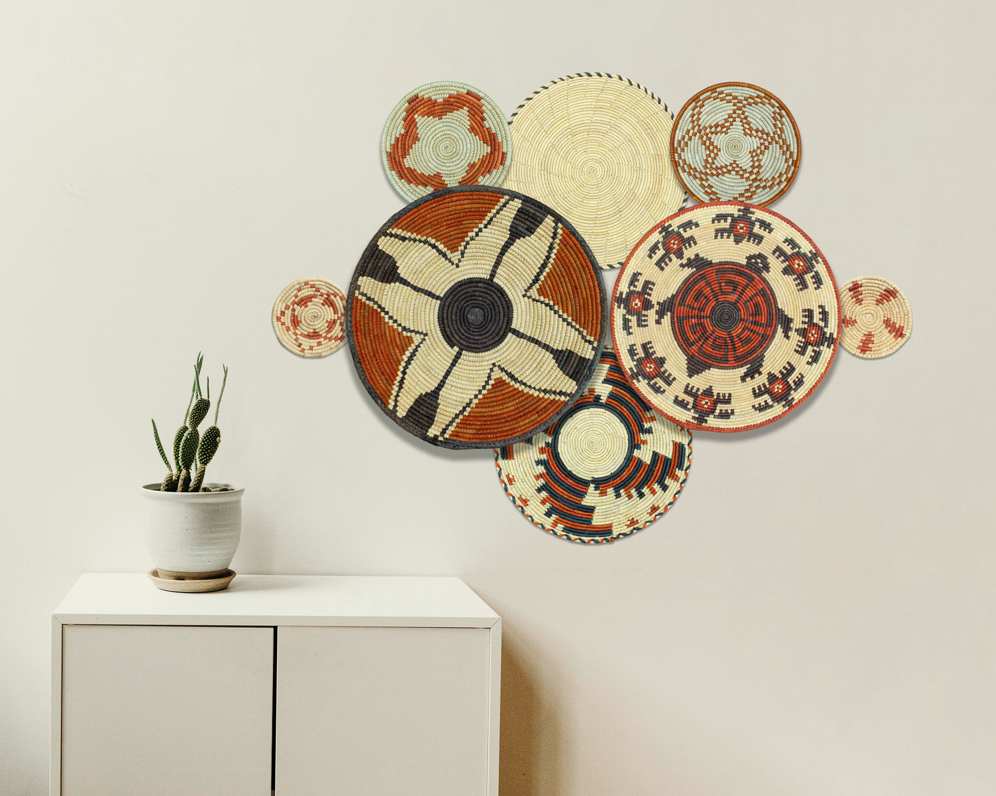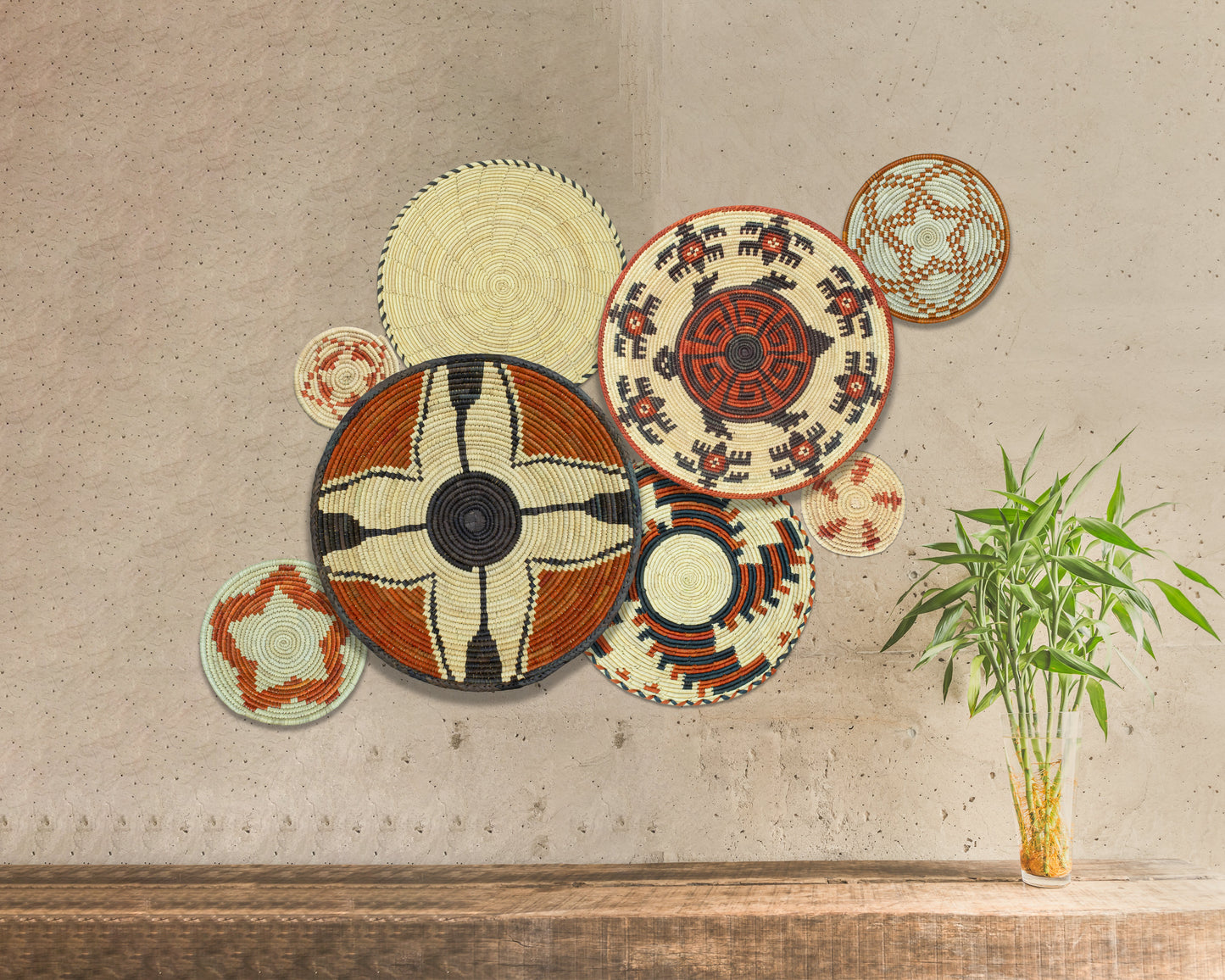 Set of 8 Handwoven wall baskets SET-358-8 N