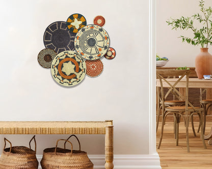 Each basket in this set is uniquely woven by skilled artisans, ensuring one-of-a-kind patterns and intricate details that add depth and character to any space. Whether you arrange them as a statement wall display, use them as tabletop decor, or incorporate them into a gallery wall, these baskets effortlessly enhance Boho, farmhouse, rustic, and modern interiors.