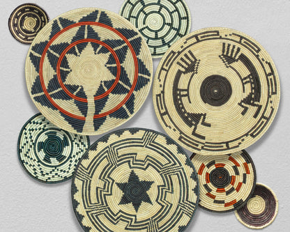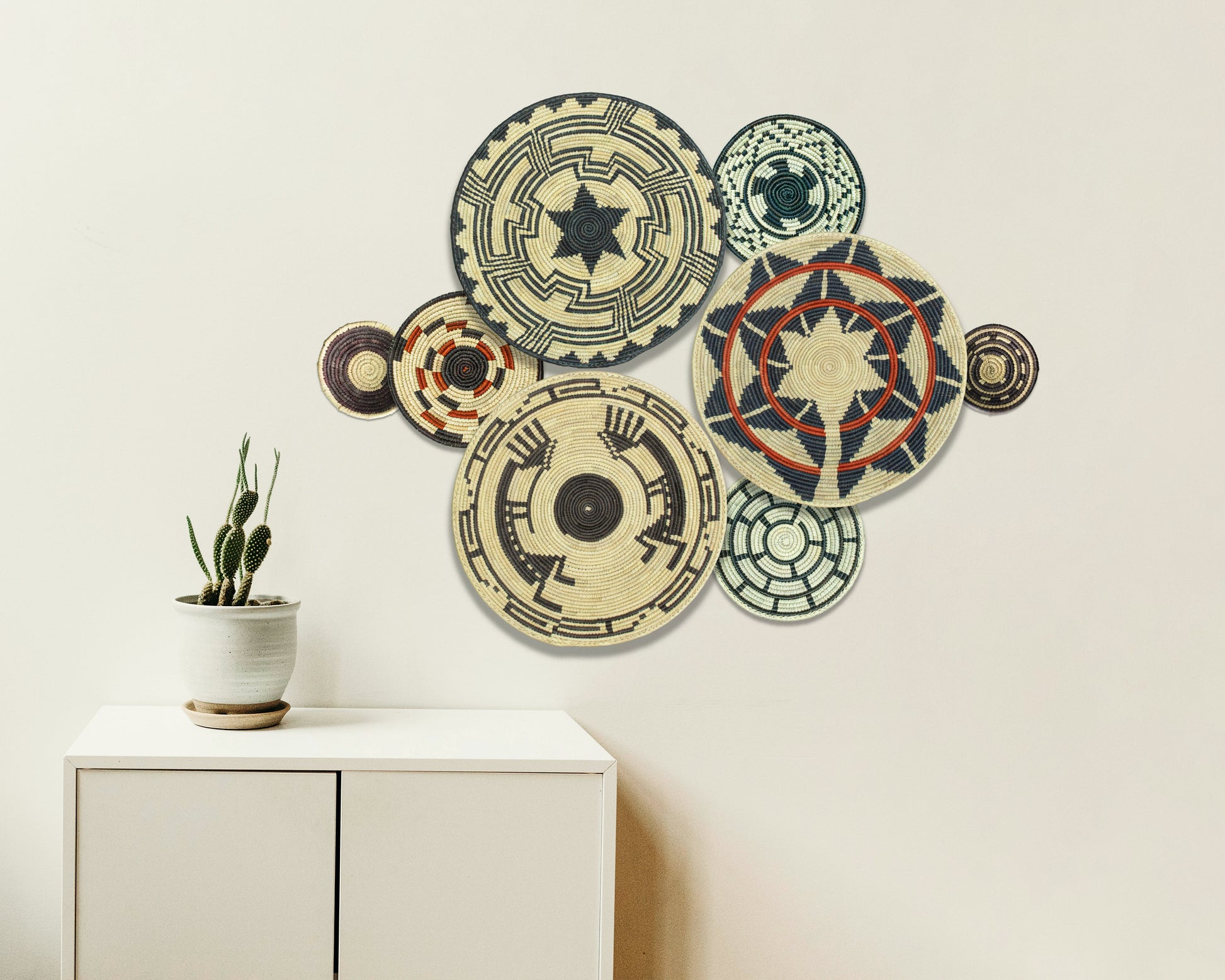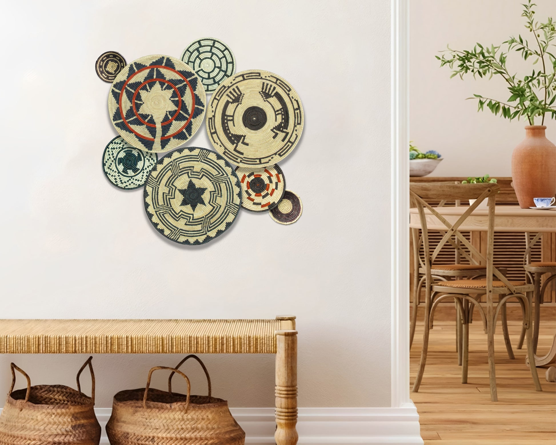 Each basket in this set is uniquely woven by skilled artisans, ensuring one-of-a-kind patterns and intricate details that add depth and character to any space. Whether you arrange them as a statement wall display, use them as tabletop decor, or incorporate them into a gallery wall, these baskets effortlessly enhance Boho, farmhouse, rustic, and modern interiors.