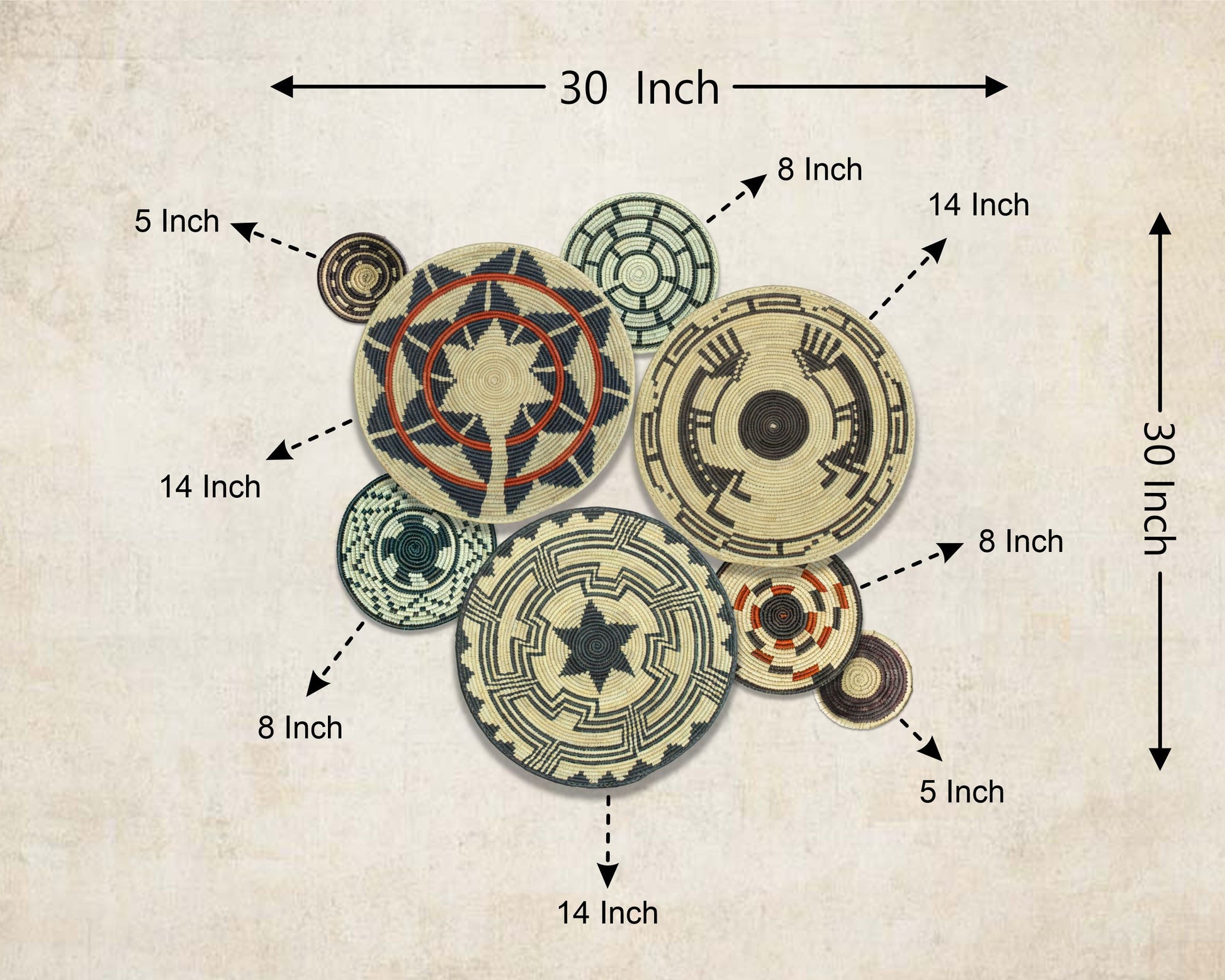 Set of 8 Handwoven wall baskets SET-365-8 N