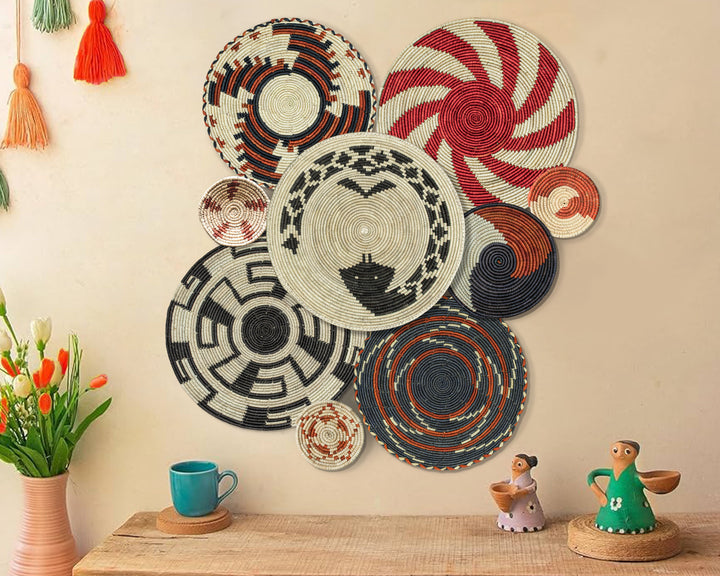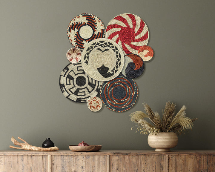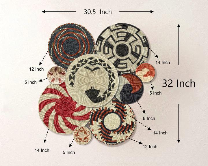 Set of 9 Handwoven wall baskets SET-1-9 N