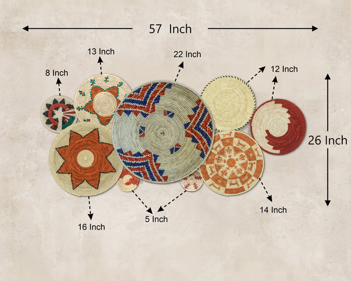 Set of 9 Handwoven wall baskets SET-14-9 N
