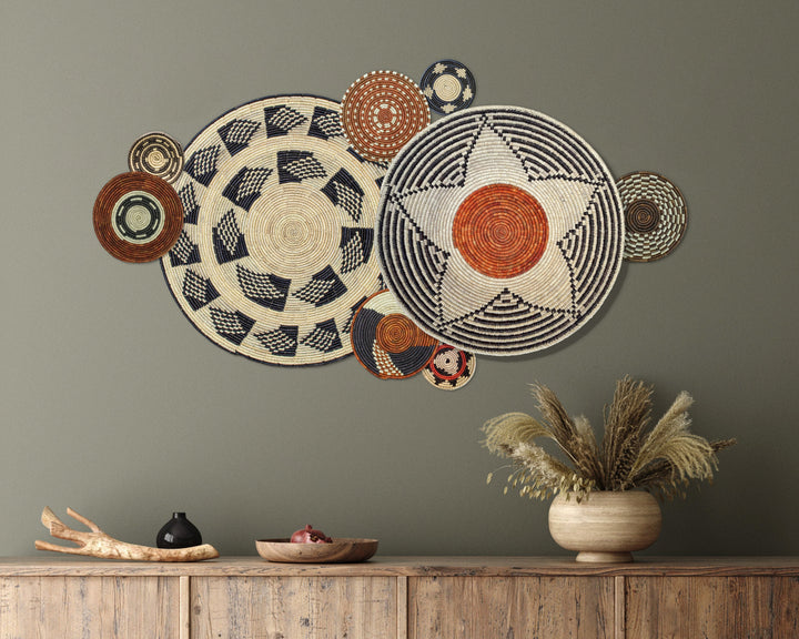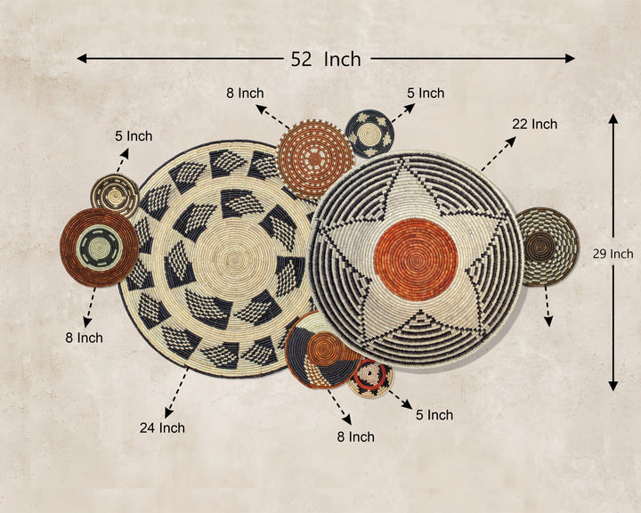 Set of 9 Handwoven wall baskets SET-5-9 N