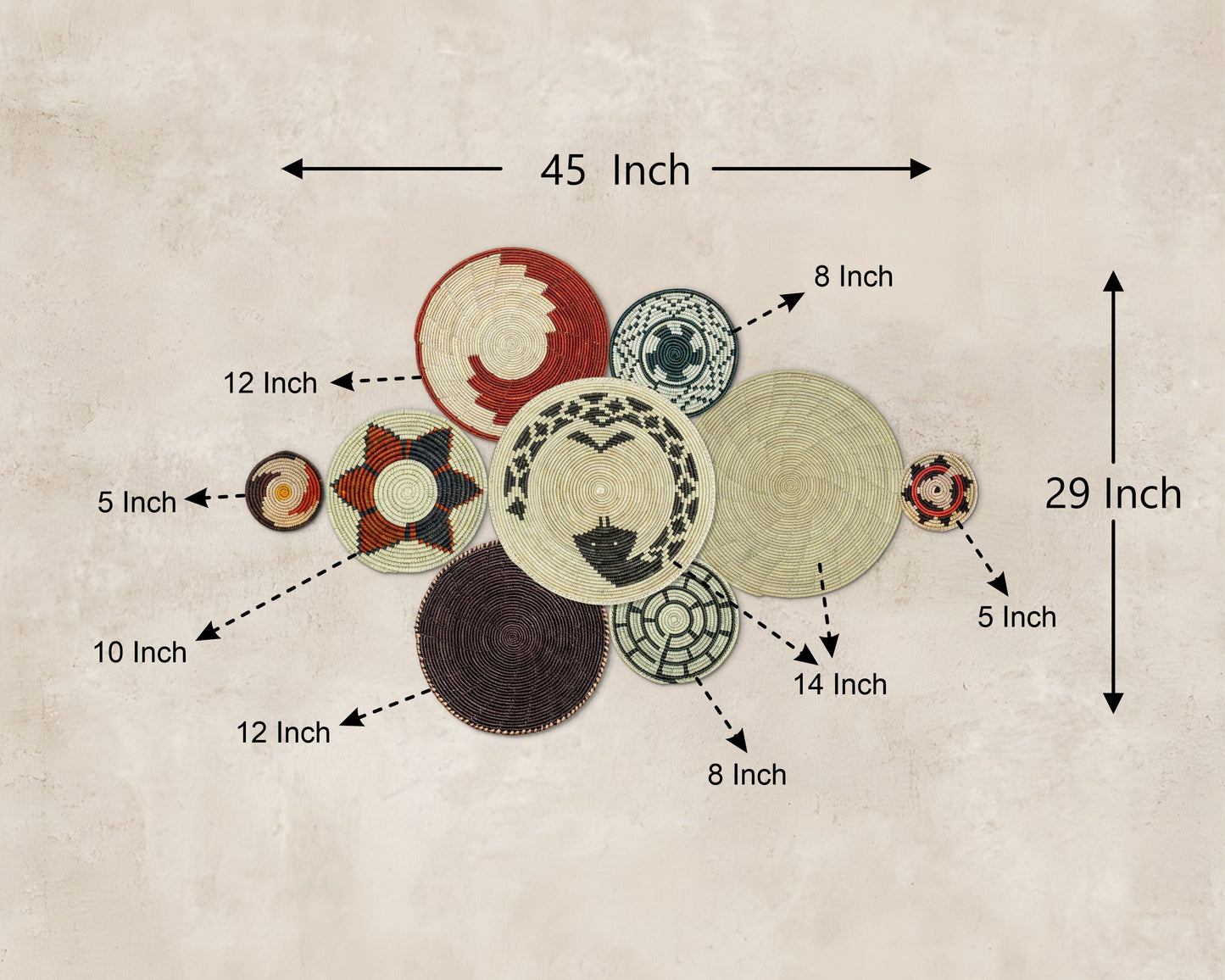Set of 9 Handwoven wall baskets SET-17-9 N