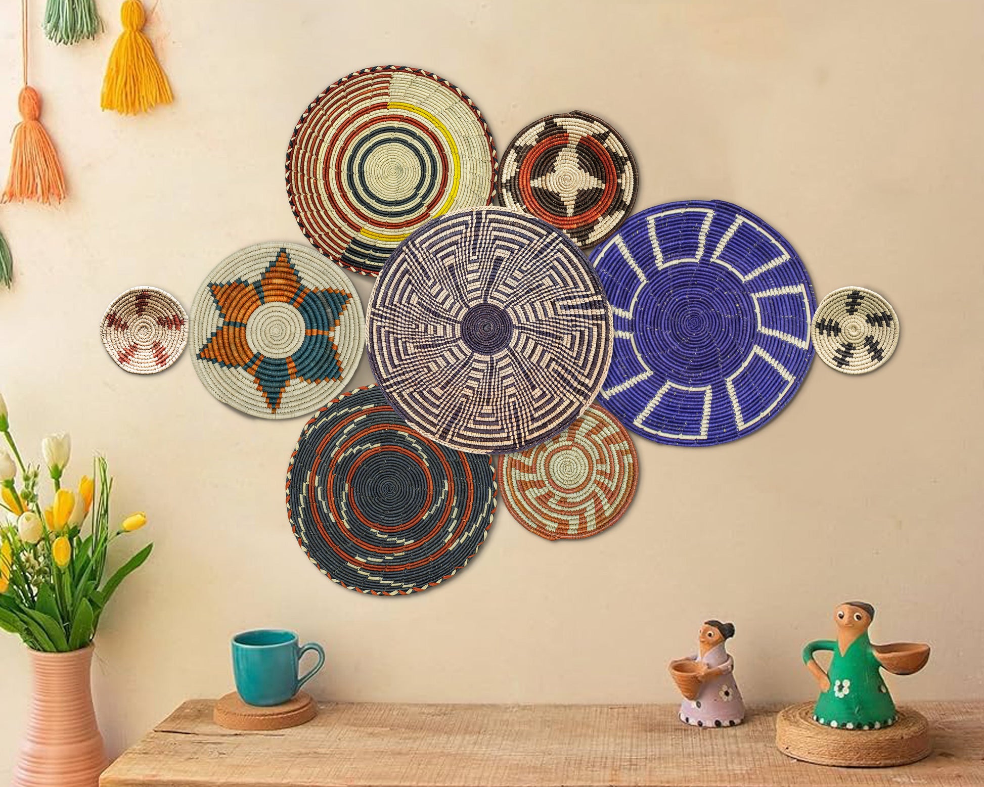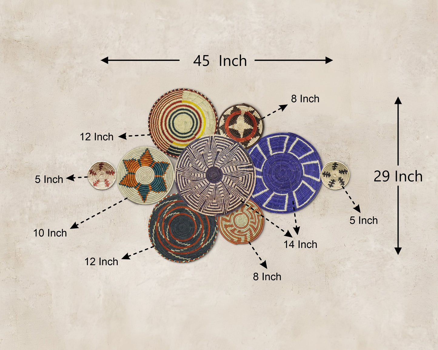 Set of 9 Handwoven wall baskets SET-19-9 N