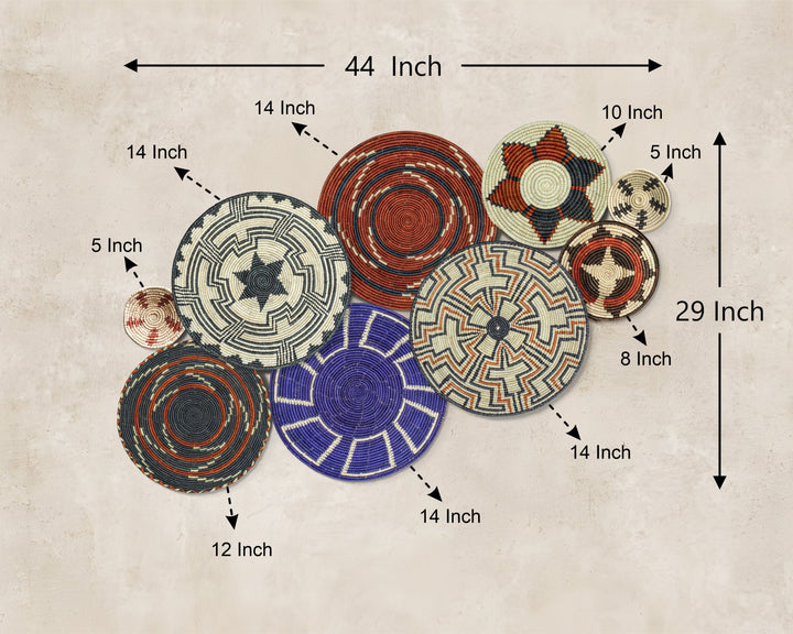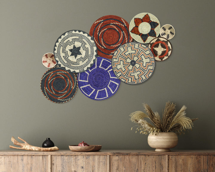 Set of 9 Handwoven wall baskets SET-2-9 N