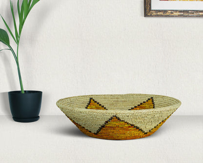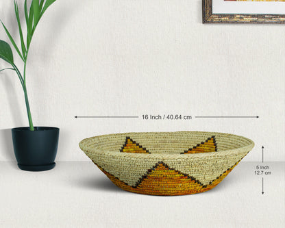 Elevate your space with the timeless charm of our 16-inch Handwoven Bowl Basket, a perfect blend of boho elegance, rustic warmth, and artisanal craftsmanship. Woven with care from natural palm leaves, sea grass, and plant-based dyes. This basket adds organic texture and a touch of heritage to your home. Whether displayed as a stunning wall decor piece, a stylish fruit bowl, or an entryway accent, its versatility shines through.