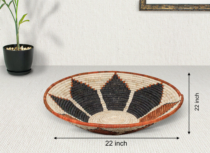 Elevate your Wall basket decor with this exquisitely handwoven 22-inch bowl basket, a perfect blend of bohemian wall decor, rustic elegance, and sustainable craftsmanship. Designed for those who appreciate handmade, eco-friendly wall hangings, this stunning woven basket is crafted from natural palm leaves and sea grass, bringing a touch of nature into your space.