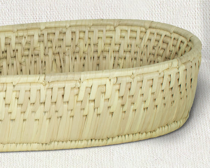 Add a touch of artisanal charm to your home with our 12-Inch Handwoven Oval Bread Tray, a beautiful fusion of boho aesthetics, rustic warmth, and timeless craftsmanship. Designed for both style and functionality, this tray is perfect for serving fresh bread, organizing essentials, or displaying as wall décor in your kitchen or dining space.