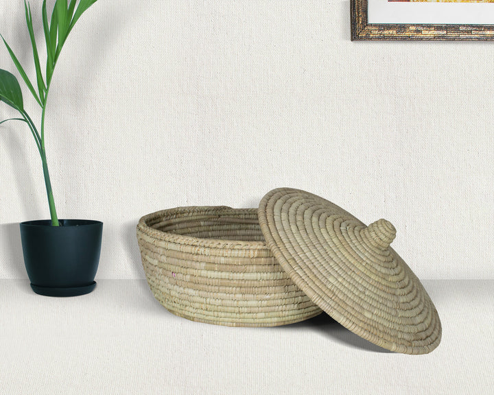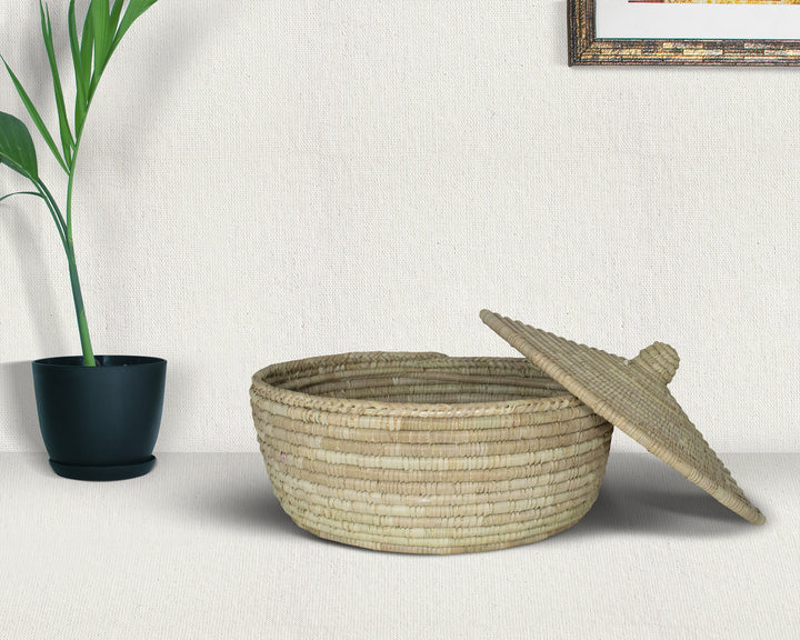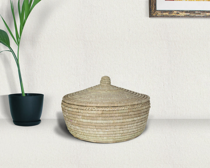 Elevate your space with the natural charm of our Yucca Lidded Basket, handwoven with care using premium-grade yucca leaves. Designed for both functionality and beauty, this versatile basket offers the perfect blend of eco-friendly storage and timeless Boho style.